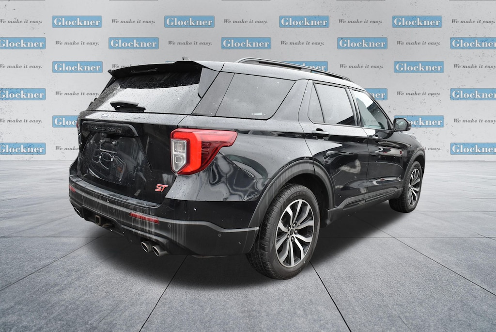 Glockner Ford Southpoint is proud to offer this fantastic 2021 Ford Explorer in Black. This 2021 Ford Explorer has passed our comprehensive inspection and comes with the following features; Equipment Group 401A, Ford Co-Pilot360 Assist+ (Evasive Steering Assist, Intelligent Adaptive Cruise Control, and Speed Sign Recognition), Premium Technology Package (10.1" LCD Capacitive Portrait Touchscreen, 2 Additional Speakers, and Leather Htd/Ventilated Sport Captain's Chairs), ST High Package (110V/150W AC Power Outlet, 360-Degree Camera w/Split View, Active Park Assist 2.0, Auto-Dimming Rearview Mirror (Interior), FordPass Connect, Forward Sensing System, Front Rain-Sensing Wipers, Hands-Free Foot-Activated Liftgate, Memory Driver's Seat, Power Tilt/Telescoping Steering Column, Radio: B&O Sound System by Bang & Olufsen, Reverse Brake Assist, Second Row Heated Seats, Sideview Mirrors w/Gloss Black Caps, SYNC 3 Communications & Entertainment System, Third Row PowerFold (Folds Flat), Universal Garage Door Opener (UGDO), Voice-Activated Touchscreen Navigation System, and Wireless Charging Pad), ST Street Pack (Performance Front & Rear Brakes and Wheels: 21" Aluminum), 4WD, 20" Machined Aluminum w/Painted Pockets Wheels, 3.58 Non-Limited-Slip Rear Axle Ratio, 3rd row seats: bench, 4-Wheel Disc Brakes, 6 Speakers, ABS brakes, Air Conditioning, Alloy wheels, AM/FM radio: SiriusXM, AM/FM Stereo, Auto High-beam Headlights, Automatic temperature control, Black Roof-Rack Side Rails, Brake assist, Bumpers: body-color, Compass, Delay-off headlights, Driver door bin, Driver vanity mirror, Dual front impact airbags, Dual front side impact airbags, Electronic Stability Control, Emergency communication system: SYNC 3 911 Assist, Exterior Parking Camera Rear, Four wheel independent suspension, Front & Second Row Floor Liners (16B), Front anti-roll bar, Front Bucket Seats, Front Center Armrest, Front dual zone A/C, Front fog lights, Front reading lights, Fully automatic headlights, Heated door mirrors, Heated front seats, Heated steering wheel, Illuminated entry, Knee airbag, Leather steering wheel, Occupant sensing airbag, Outside temperature display, Overhead airbag, Overhead console, Panic alarm, Passenger door bin, Passenger vanity mirror, Power door mirrors, Power driver seat, Power Liftgate, Power passenger seat, Power steering, Power windows, Rear air conditioning, Rear anti-roll bar, Rear reading lights, Rear window defroster, Rear window wiper, Remote keyless entry, Security system, SelectShift Capability w/Paddle Shifters, Speed control, Speed-sensing steering, Speed-Sensitive Wipers, Split folding rear seat, Spoiler, Sport steering wheel, Steering wheel mounted audio controls, SYNC 3/Apple CarPlay/Android Auto, Tachometer, Telescoping steering wheel, Tilt steering wheel, Traction control, Trip computer, Twin Panel Moonroof, and Variably intermittent wipers.
