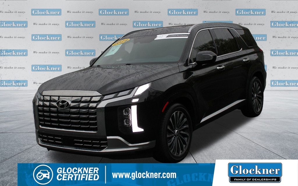Glockner Honda Toyota is proud to offer this superb-looking 2024 Hyundai Palisade in Abyss Black Pearl. This 2024 Hyundai Palisade has passed our comprehensive inspection and comes with the following features; Option Group 01, Glockner Certified Certified, 3rd row seats: split-bench, AM/FM radio: SiriusXM, Apple CarPlay & Android Auto, Automatic temperature control, Exterior Parking Camera Rear, harman/kardon® Speakers, Heads-Up Display, Heated & Ventilated Front Bucket Seats, Heated rear seats, Memory seat, Navigation System, Power Liftgate, Power moonroof, Premium Nappa Leather Seat Trim, Rear air conditioning, Ventilated rear seats, 12 Speakers, 3.648 Axle Ratio, 4-Wheel Disc Brakes, ABS brakes, Air Conditioning, Alloy wheels, Auto High-beam Headlights, Auto-dimming door mirrors, Auto-dimming Rear-View mirror, Auto-leveling suspension, Brake assist, Bumper Applique, Bumpers: body-color, Cargo Cover/Screen, Cargo Tray, Carpeted Floor Mats, Compass, Delay-off headlights, Driver door bin, Driver vanity mirror, Dual front impact airbags, Dual front side impact airbags, Electronic Stability Control, Emergency communication system, First Aid Kit, Four wheel independent suspension, Front anti-roll bar, Front Bucket Seats, Front Center Armrest, Front dual zone A/C, Front reading lights, Fully automatic headlights, Garage door transmitter: HomeLink, Heated door mirrors, Heated front seats, Heated steering wheel, Illuminated entry, Knee airbag, Low tire pressure warning, Mudguards, Occupant sensing airbag, Outside temperature display, Overhead airbag, Overhead console, Panic alarm, Passenger door bin, Passenger vanity mirror, Power door mirrors, Power driver seat, Power passenger seat, Power steering, Power windows, Radio data system, Radio: AM/FM/MP3 Premium Audio System, Rain sensing wipers, Rear anti-roll bar, Rear audio controls, Rear reading lights, Rear side impact airbag, Rear window defroster, Rear window wiper, Reclining 3rd row seat, Remote keyless entry, Security system, Speed control, Speed-sensing steering, Split folding rear seat, Spoiler, Steering wheel mounted audio controls, Tachometer, Telescoping steering wheel, Tilt steering wheel, Traction control, Trip computer, Turn signal indicator mirrors, Variably intermittent wipers, Ventilated front seats, and Wheels: 20" x 7.5J Calligraphy Exclusive Alloy.