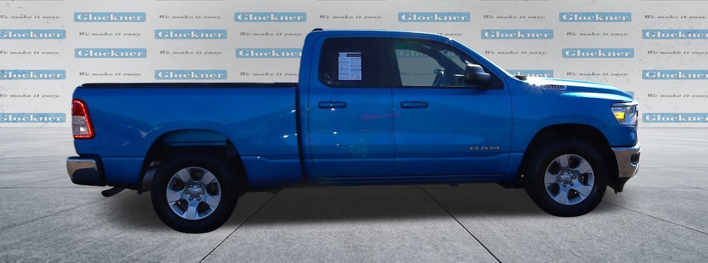 Glockner Honda Toyota is proud to offer this good-looking 2022 Ram 1500 in Hydro Blue Pearlcoat. This 2022 Ram 1500 has passed our comprehensive inspection and comes with the following features; Quick Order Package 23Z Big Horn (Big Horn Badge), 1500 Big Horn/Lone Star, Glockner Certified Certified, 4D Quad Cab, 3.6L V6 24V VVT, 4WD, Hydro Blue Pearlcoat, Class IV Receiver Hitch, 3 Rear Seat Head Restraints, 3.21 Rear Axle Ratio, 4 Way Front Headrests, 4-Wheel Disc Brakes, 48V Belt Starter Generator, 6 Speakers, ABS brakes, Air Conditioning, Alloy wheels, AM/FM radio, Black Exterior Mirrors, Brake assist, Bumpers: chrome, Cloth Bench Seat, Compass, Convex Wide-Angle Mirror Insert, Delay-off headlights, Driver door bin, Dual front impact airbags, Dual front side impact airbags, Electronic Stability Control, Emergency communication system: SiriusXM Guardian, Front anti-roll bar, Front Center Armrest w/Storage, Front fog lights, Front License Plate Bracket, Front reading lights, Front Seat Back Map Pockets, Front wheel independent suspension, Fully automatic headlights, Global Telematics Box Module (TBM), GPS Antenna Input, Heated door mirrors, Illuminated entry, Integrated Voice Command w/Bluetooth, Leather steering wheel, Low tire pressure warning, Manual Adjust 4-Way Front Passenger Seat, Occupant sensing airbag, Outside temperature display, Overhead airbag, Overhead console, Panic alarm, ParkView Rear Back-Up Camera, Passenger door bin, Passenger vanity mirror, Power door mirrors, Power steering, Power windows, Radio data system, Radio: Uconnect 3 w/5" Display, Rear 60/40 Folding Seat, Rear anti-roll bar, Rear seat center armrest, Rear step bumper, Remote keyless entry, Remote Start System, Speed control, Split folding rear seat, Steering wheel mounted audio controls, Tachometer, Telescoping steering wheel, Tilt steering wheel, Traction control, Trip computer, Variably intermittent wipers, Voltmeter, and Wheels: 18" x 8" Cast-Aluminum Painted.