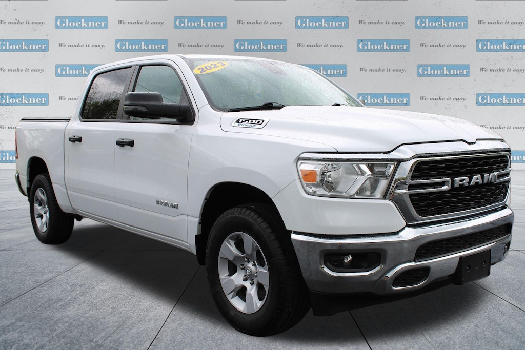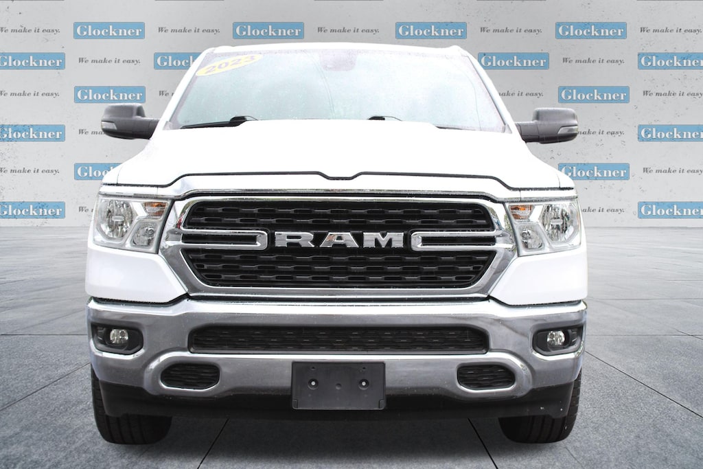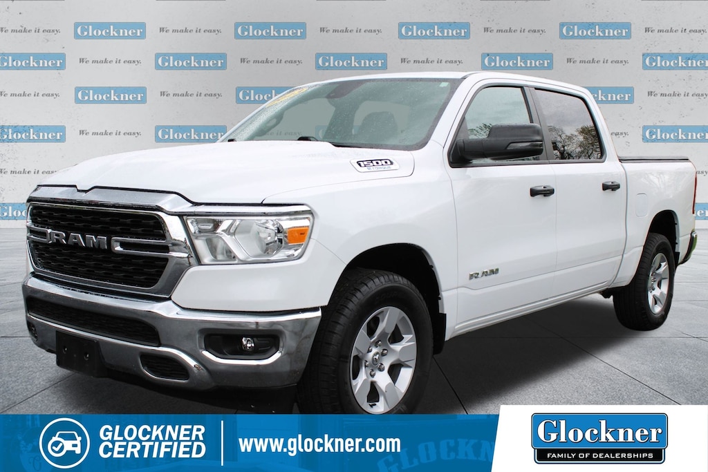 Glockner Honda Toyota is proud to offer this fantastic-looking 2023 Ram 1500 in Bright White Clearcoat. This 2023 Ram 1500 has passed our comprehensive inspection and comes with the following features; Big Horn Level 1 Equipment Group (2nd Row In Floor Storage Bins, 4G LTE Wi-Fi Hot Spot, 8.4" Touchscreen Display, Apple CarPlay, Auto-Dimming Exterior Driver Mirror, Auto-Dimming Rear-View Mirror, Black Exterior Mirrors, Black Premium Power Mirrors, Bluetooth Handsfree Phone & Audio, Class IV Receiver Hitch, Connectivity - US/Canada, Convex Wide-Angle Exterior Mirror Insert, Electric Shift-On-Demand Transfer Case, Exterior Mirrors Courtesy Lamps, Exterior Mirrors w/Heating Element, Exterior Mirrors w/Supplemental Signals, For Details, Visit DriveUconnect.com, For More Info, Call 800-643-2112, Front Fog Lamps, Glove Box Lamp, Google Android Auto, GPS Antenna Input, Heated Front Seats, Heated Steering Wheel, Integrated Center Stack Radio, Passenger Sun Visor w/Illuminated Mirror, Power-Folding Mirrors, Radio: Uconnect 5 W w/8.4" Display, Rear Dome w/On/Off Switch Lamp, Rear Power Sliding Window, Rear Window Defroster, SiriusXM Satellite Radio, and USB Host Flip), Quick Order Package 23Z Big Horn (Big Horn Badge), Glockner Certified Certified, 3 Rear Seat Head Restraints, 3.21 Rear Axle Ratio, 4 Way Front Headrests, 4-Wheel Disc Brakes, 48V Belt Starter Generator, 6 Speakers, ABS brakes, Air Conditioning, Alloy wheels, AM/FM radio, Brake assist, Bumpers: chrome, Cloth Bench Seat, Compass, Delay-off headlights, Driver door bin, Dual front impact airbags, Dual front side impact airbags, Electronic Stability Control, Emergency communication system: SiriusXM Guardian, Front anti-roll bar, Front Center Armrest w/Storage, Front License Plate Bracket, Front reading lights, Front Seat Back Map Pockets, Front wheel independent suspension, Fully automatic headlights, Global Telematics Box Module (TBM), Heated door mirrors, Illuminated entry, Integrated Voice Command w/Bluetooth, Leather steering wheel, Low tire pressure warning, MOPAR Front & Rear Rubber Floor Mats, Occupant sensing airbag, Outside temperature display, Overhead airbag, Overhead console, Panic alarm, ParkView Rear Back-Up Camera, Passenger door bin, Passenger vanity mirror, Power door mirrors, Power steering, Power windows, Radio data system, Radio: Uconnect 3 w/5" Display, RAM Grille Badge - Chrome, Rear 60/40 Folding Seat, Rear anti-roll bar, Rear seat center armrest, Rear step bumper, Remote keyless entry, Speed control, Split folding rear seat, Steering wheel mounted audio controls, Tachometer, Telescoping steering wheel, Tilt steering wheel, Traction control, Trip computer, Variably intermittent wipers, Voltmeter, and Wheels: 18" x 8" Cast-Aluminum PainteD.
