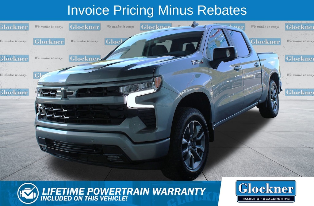 Glockner Chevrolet is proud to offer this hard-working 2026 Chevrolet Silverado 1500 in Sterling Gray Metallic. This 2026 Chevrolet Silverado 1500 has passed our comprehensive inspection and comes with the following features; Convenience Package (10-Way Power Driver Seat w/Lumbar, 120-Volt Bed Mounted Power Outlet, 120-Volt Interior Power Outlet, Dual Rear USB Ports (Charge Only), Dual-Zone Automatic Climate Control, Electric Rear-Window Defogger, Heated Driver & Front Outboard Passenger Seats, Heated Steering Wheel, Keyless Open & Start, LED Cargo Area Lighting, Manual Tilt/Telescoping Steering Column, Remote Vehicle Starter System, Theft Deterrent System (Unauthorized Entry), and Wrapped Steering Wheel), Convenience Package II (Hitch Guidance w/Hitch View, In-Vehicle Trailering System App, Power Sliding Rear Window w/Rear Defogger, Premium Bose 7-Speaker Sound System, and Universal Home Remote), Preferred Equipment Group 1SP (12.3 Multicolor Reconfigurable Digital Display, 6-Speaker Audio System, All-Star Edition, Auto-Locking Rear Differential, Bluetooth® For Phone, Color-Keyed Carpeting Floor Covering, Deep-Tinted Glass, Electronic Cruise Control, EZ Lift Power Lock & Release Tailgate, Front Frame-Mounted Black Recovery Hooks, Front LED Fog Lamps, Front Rubberized Vinyl Floor Mats, HD Rear Vision Camera, Heated Power-Adjustable Outside Mirrors, High Gloss Black Mirror Caps, Inside Rear-View Mirror w/Tilt, Integrated Trailer Brake Controller, OnStar Services Capable, Power Front Windows w/Driver Express Up/Down, Power Front Windows w/Passenger Express Down, Power Rear Windows w/Express Down, Rear 60/40 Folding Bench Seat (Folds Up), Rear Rubberized-Vinyl Floor Mats, SiriusXM w/360L Trial Subscription, Standard Tailgate, Steering Wheel Audio Controls, Teen Driver, Tire Pressure Monitoring System, and Wi-Fi Hot Spot Capable), Safety Package (HD Surround Vision, Perimeter Lighting, Rear Cross Traffic Braking, Rear Pedestrian Alert, Trailer Camera Provisions, Trailer Side Blind Zone Alert, and Ultrasonic Front & Rear Park Assist), Standard Suspension Package, Trailering Package (Hitch Guidance), Z71 Off-Road Package (Dual Exhaust w/Polished Outlets, Heavy-Duty Air Filter, Hill Descent Control, and Off-Road Suspension), Silverado 1500 RST, 4D Crew Cab, EcoTec3 5.3L V8, 4WD, Sterling Gray Metallic, 170 Amp Alternator, 2 USB Data Ports, 220 Amp Alternator, 3.23 Rear Axle Ratio, 4-Wheel Disc Brakes, 40/20/40 Front Split-Bench Seat, 6 Speakers, ABS brakes, Air Conditioning, All-Weather Floor Liner (LPO) (AAK), Alloy wheels, AM/FM radio: SiriusXM with 360L, Apple CarPlay/Android Auto, Auto High-beam Headlights, Automatic Emergency Braking, Automatic temperature control, Auxiliary External Transmission Oil Cooler, Brake assist, Bumpers: body-color, Cloth Seat Trim, Compass, Delay-off headlights, Driver door bin, Driver vanity mirror, Dual front impact airbags, Dual front side impact airbags, Electronic Stability Control, Electronic Transmission Range Selector Shifter, Emergency communication system: OnStar, External Engine Oil Cooler, Floor Mounted Center Console, Following Distance Indicator, Forward Collision Alert, Front anti-roll bar, Front Bucket Seats, Front Center Armrest w/Storage, Front dual zone A/C, Front fog lights, Front Pedestrian Braking, Front reading lights, Front wheel independent suspension, Fully automatic headlights, Heated door mirrors, Heated front seats, Heated steering wheel, Illuminated entry, IntelliBeam Automatic High Beam On/Off, Lane Keep Assist w/Lane Departure Warning, Low tire pressure warning, Occupant sensing airbag, Outside temperature display, Overhead airbag, Overhead console, Panic alarm, Passenger door bin, Passenger vanity mirror, Power door mirrors, Power driver seat, Power steering, Power windows, Premium audio system: Chevrolet Infotainment 3 Premium, Radio data system, Radio: Chevrolet Infotainme Price includes: $1000 - Bonus Cash. Exp. 11/03/2025 $2000 - Customer Cash. Exp. 11/03/2025