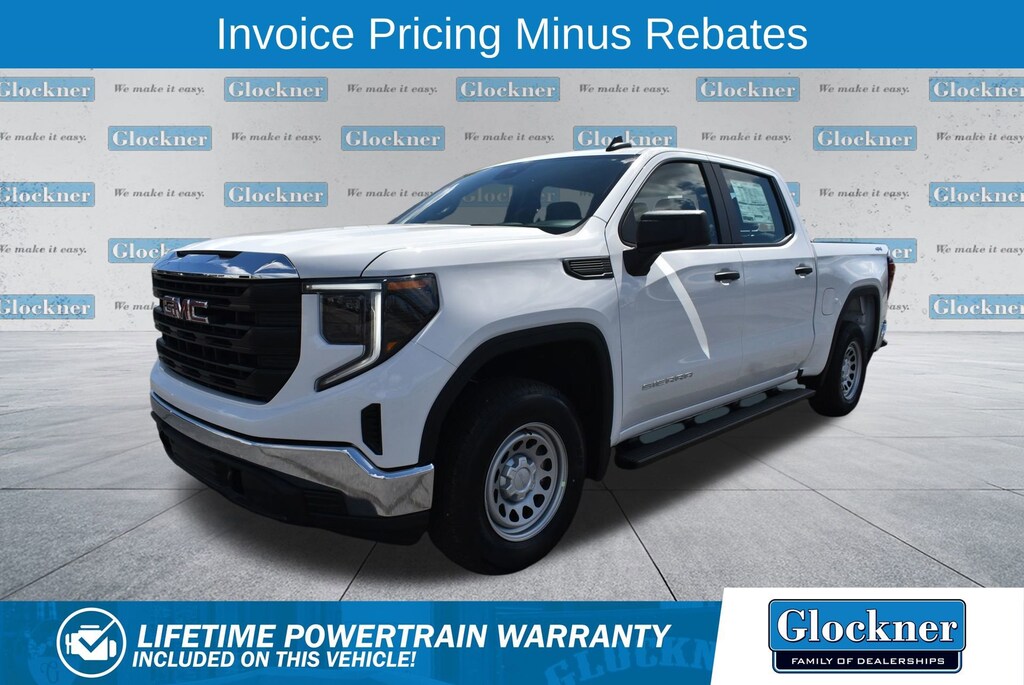 Glockner Chevrolet is proud to offer this outstanding 2025 GMC Sierra 1500 in Summit White. This 2025 GMC Sierra 1500 has passed our comprehensive inspection and comes with the following features; Preferred Equipment Group 1SA (2 Charge/Data USB Ports, 220 Amp Alternator, Chrome Header w/Flat Black Grille Insert Bars, Front Frame-Mounted Black Recovery Hooks, HD Rear Vision Camera, OnStar Services Capable, Power Door Locks, Power Front Windows w/Driver Express Up/Down, Power Front Windows w/Passenger Express Down, Power Rear Windows w/Express Down, Push Button Start, Remote Keyless Entry, Solar Absorbing Tinted Glass, and Wi-Fi Hotspot Capable), Standard Suspension Package, 10-Speed Automatic, 4WD, Black Cloth, 170 Amp Alternator, 3 Years SiriusXM, 4-Way Manual Driver Seat Adjuster, 4-Way Manual Passenger Seat Adjuster, 4-Wheel Disc Brakes, 6 Speakers, 6-Speaker Audio System Feature, ABS brakes, Air Conditioning, All-Weather Floor Liner (LPO), AM/FM radio, Apple CarPlay/Android Auto, Auto High-beam Headlights, Auto-Locking Rear Differential, Automatic Emergency Braking, Auxiliary External Transmission Oil Cooler, Black Assist Steps, Brake assist, Buckle to Drive, Bumpers: chrome, Color-Keyed Carpeting Floor Covering, Compass, Delay-off headlights, Driver door bin, Dual front impact airbags, Dual front side impact airbags, Electronic Stability Control, Emergency communication system: OnStar, External Engine Oil Cooling, Following Distance Indicator, Forward Collision Alert, Front 40/20/40 Split-Bench Seat, Front anti-roll bar, Front Center Armrest w/Storage, Front Pedestrian Braking, Front reading lights, Front Rubberized-Vinyl Floor Mats, Front wheel independent suspension, Fully automatic headlights, Illuminated entry, IntelliBeam Automatic High Beam On/Off, Lane Keep Assist w/Lane Departure Warning, Low tire pressure warning, Occupant sensing airbag, Outside temperature display, Overhead airbag, Overhead console, Panic alarm, Passenger door bin, Passenger vanity mirror, Power steering, Power windows, Radio data system, Radio: GMC Infotainment Audio System, Rear reading lights, Rear Rubberized-Vinyl Floor Mats, Rear step bumper, Remote keyless entry, SiriusXM Trial Subscription, Speed control, Speed-sensing steering, Split folding rear seat, Tachometer, Tilt steering wheel, Traction control, Trip computer, Variably intermittent wipers, Vinyl Seat Trim, Voltmeter, Wheels: 17 x 8 Silver Painted Steel, and Wireless Apple CarPlay/Wireless Android Auto.10-Speed Automatic, 4WD, Black Cloth.Recent Arrival! Price includes: $1500 - Bonus Cash. Exp. 11/03/2025 $2750 - Purchase Allowance. Exp. 11/03/2025