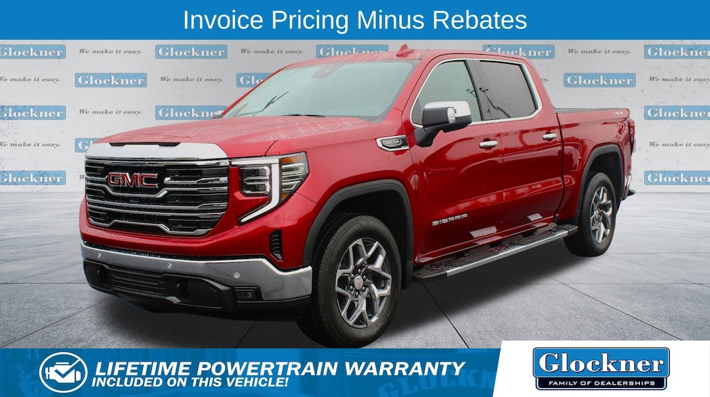 Glockner Chevrolet is proud to offer this handsome 2026 GMC Sierra 1500 in Volcanic Red Tintcoat. This 2026 GMC Sierra 1500 has passed our comprehensive inspection and comes with the following features; High Capacity Suspension Package, Preferred Equipment Group 4SA (120-Volt Bed Mounted Power Outlet, 120-Volt Interior Power Outlet, 170 Amp Alternator, 2 Charge/Data USB Ports, 2 Type-C Charge-Only Rear USB Ports, 6-Speaker Audio System Feature, Auto-Locking Rear Differential, Auxiliary External Transmission Oil Cooler, Chrome Header & Chrome Grille Insert Bars, Color-Keyed Carpeting Floor Covering, Deep-Tinted Glass, Electric Rear-Window Defogger, Front Frame-Mounted Black Recovery Hooks, Front Rain-Sensing Wipers, HD Rear Vision Camera, Integrated Trailer Brake Controller, Keyless Open & Start, LED Cargo Area Lighting, Manual Tilt-Wheel & Telescoping Steering Column, OnStar Services Capable, Perimeter Lighting, Power Door Locks, Power Front Passenger Windows w/Express Up/Down, Power Front Windows w/Driver Express Up/Down, Power Rear Windows w/Express Down, Push Button Start, Rear Wheelhouse Liners, Remote Vehicle Starter System, SiriusXM w/360L Trial Subscription, Steering Wheel Audio Controls, Theft Deterrent System (Unauthorized Entry), and Wi-Fi Hotspot Capable), ProGrade Trailering System (Hitch View and In-Vehicle Trailering System App), Sierra Safety Plus Package (HD Surround Vision, Rear Cross Traffic Braking, Rear Pedestrian Detection, Safety Alert Seat, Trailer Camera Provisions, Trailer Side Blind Zone Alert, and Ultrasonic Front & Rear Park Assist), SLT Convenience Package (2 Charge/Data USB Ports Inside Center Console, Electronic Precision Shift, Floor-Mounted Center Console, Front Bucket Seats, Power Rake & Telescoping Steering Column, Premium Bose 7-Speaker Sound System, Ventilated Driver & Front Passenger Seats, and Wireless Charging), SLT Preferred Package (Adaptive Cruise Control, Heated 2nd Row Outboard Seats, Power Sliding Rear Window w/Rear Defogger, and Universal Home Remote), SLT Premium Plus Package (Chrome Wheel To Wheel Assist Steps and Spray-On Pickup Bedliner w/GMC Logo), Standard Suspension Package, Trailering Package (Hitch Guidance), Sierra 1500 SLT, 4D Crew Cab, EcoTec3 5.3L V8, 4WD, Volcanic Red Tintcoat, 10-Way Power Driver Seat Adjuster w/Lumbar, 10-Way Power Passenger Seat Adjuster w/Lumbar, 20 Polished Aluminum Wheels, 3.23 Rear Axle Ratio, 4-Wheel Disc Brakes, 6 Speakers, ABS brakes, Air Conditioning, Alloy wheels, AM/FM radio: SiriusXM with 360L, Apple CarPlay/Android Auto, Auto High-beam Headlights, Auto-dimming door mirrors, Auto-dimming Rear-View mirror, Automatic Emergency Braking, Automatic temperature control, Brake assist, Buckle to Drive, Bumpers: chrome, Compass, Delay-off headlights, Driver door bin, Driver Memory, Driver vanity mirror, Dual front impact airbags, Dual front side impact airbags, Electronic Stability Control, Emergency communication system: OnStar, Following Distance Indicator, Forward Collision Alert, Front 40/20/40 Split-Bench Seat, Front anti-roll bar, Front Center Armrest w/Storage, Front dual zone A/C, Front fog lights, Front Pedestrian Braking, Front reading lights, Front wheel independent suspension, Fully automatic headlights, Hard Folding Truck Bed Cover (LPO), Heated door mirrors, Heated Driver & Front Outboard Passenger Seating, Heated front seats, Heated steering wheel, Illuminated entry, IntelliBeam Automatic High Beam On/Off, Lane Keep Assist w/Lane Departure Warning, Low tire pressure warning, Memory seat, Navigation System, Occupant sensing airbag, Outside temperature display, Overhead airbag, Overhead console, Panic alarm, Passenger door bin, Passenger vanity mirror, Perf Leather-Appointed Front Outboard Seat Trim, Power door mirrors, Power driver seat, Power passenger seat, Power steering, Power windows, Radio data system, Radio: Premium GMC Infota Price includes: $1500 - Bonus Cash. Exp. 12/01/2025 $1750 - Purchase Allowance. Exp. 12/01/2025