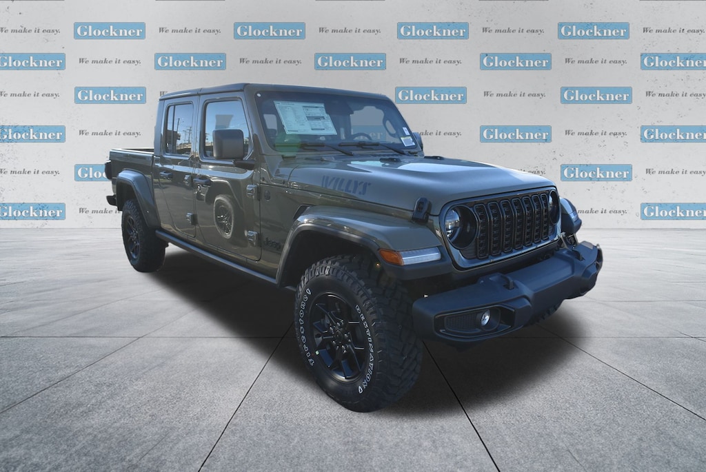 Glockner Chrysler Dodge Jeep Ram of Ashland is proud to offer this terrific 2026 Jeep Gladiator in Pj5. This 2026 Jeep Gladiator has passed our comprehensive inspection and comes with the following features; Convenience Group (Daytime Running Lamp System, Emergency/Assistance Call, Front Door Locks 2-Door Passive Entry, Heated Front Seats, Heated Steering Wheel, Remote Start System, and Universal Garage Door Opener), Quick Order Package 24W Willys (4-Wheel Drive Decal, Advanced Brake Assist, Air Conditioning w/Auto Temperature Control, Automatic Headlamps, Auxiliary Switches, Black Grille, Body Color Fender Flares (2-Piece), Class IV Receiver Hitch, Cluster 7.0" TFT Color Display, Corning Gorilla Glass, Daytime Running Lamps LED Accents, Deep Tint Sunscreen Windows, E-Locker Rear Axle, Front Heavy Duty Red Accent Shock Absorbers, Front LED Fog Lamps, Full Speed Forward Collision Warning Plus, Heavy-Duty Engine Cooling, LED Premium Reflector Headlamps, LED Taillamps, Mold In Color Bumper w/Gloss Black, MOPAR All-Weather Slush Mats, Off-Road Plus Mode, Power Heated Mirrors, Premium Wrapped Steering Wheel, Protection Sill Rails, Rear Heavy Duty Red Accent Shock Absorbers, Security Alarm, Sun Visors w/Illuminated Vanity Mirrors, Trailer Hitch Zoom, Wheels: 17" x 7.5" Painted Black, Willys Hood Decal, and Willys Suspension), Technology Group (115V Auxiliary Power Outlet, 400W Inverter, Auto-Dimming Rear-View Mirror, Connected Travel & Traffic Services, GPS Navigation, HD Radio, Integrated Voice Command w/Bluetooth, Media Hub w/2 Charge Only USBs, and Radio: Uconnect 5 Nav w/12.3" Display), 110 MPH Vehicle Max Speed Calibration, 3.73 Rear Axle Ratio, 4-Wheel Disc Brakes, 8 Speakers, ABS brakes, Air Conditioning, Alpine Premium Audio System, AM/FM radio: SiriusXM with 360L, Apple CarPlay/Android Auto, Black 3-Piece Hard Top, Brake assist, Cloth Low-Back Bucket Seats, Compass, Delay-off headlights, Driver door bin, Driver vanity mirror, Dual front impact airbags, Dual front side impact airbags, Electronic Stability Control, Freedom Panel Storage Bag, Front anti-roll bar, Front Bucket Seats, Front Center Armrest w/Storage, Front fog lights, Front License Plate Bracket, Front reading lights, Illuminated entry, Integrated roll-over protection, Low tire pressure warning, Manufacturer's Statement of Origin, MOPAR Spray In Bedliner, MyFlexCare Service Plan, Normal Duty Suspension, Occupant sensing airbag, Outside temperature display, Overhead airbag, Panic alarm, ParkView Rear Back-Up Camera, Passenger door bin, Passenger vanity mirror, Power steering, Power windows, Radio data system, Radio: Uconnect 5 w/12.3" Display, Rear anti-roll bar, Rear reading lights, Rear Sliding Window, Rear Window Defroster, Remote keyless entry, Speed control, Split folding rear seat, Steering wheel mounted audio controls, Tachometer, Telescoping steering wheel, Tilt steering wheel, Traction control, Trip computer, Variably intermittent wipers, Voltmeter, and Wheels: 17" x 7.5" Black Steel Styled.