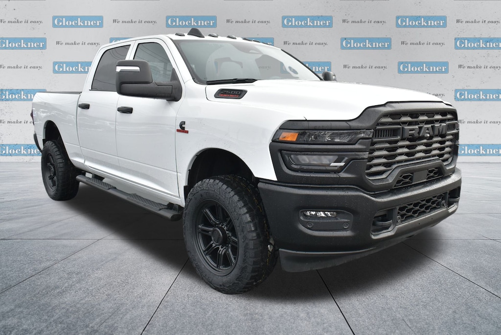 Glockner Chrysler Dodge Jeep Ram of Ashland is proud to offer this good-looking 2025 Ram 2500 in Bright White Clearcoat. This 2025 Ram 2500 has passed our comprehensive inspection and comes with the following features; Bed Convenience Group (LED Bed Lighting and MOPAR Spray In Bedliner), Cold Weather Group (Engine Block Heater and MOPAR Winter Front Grille Cover), Quick Order Package 24A Tradesman, Tradesman Level 1 Equipment Group (115V Auxiliary Front Power Outlet, 12" Touchscreen Display, 2 Way Rear Headrest Seat, 4 Way Front Headrests, 40/20/40 Split Bench Seat, 400W Inverter, 4G LTE Wi-Fi Hot Spot, Air Conditioning ATC w/Dual Zone Control, Alexa Built-In, Anti-Spin Differential Rear Axle, Apple CarPlay, Auto-Dimming Rear-View Mirror, Black Exterior Mirrors, Carpet Floor Covering, Cloth 40/20/40 Bench Seat, Connected Travel & Traffic Services, Connectivity - US/Canada, Disassociated Touchscreen Display, Emergency Vehicle Alert System (EVAS), Exterior 115V AC Outlet, Exterior Mirrors Courtesy Lamps, Exterior Mirrors w/Heating Element, Exterior Mirrors w/Supplemental Signals, Front & Rear Floor Mats, Front Armrest w/Cupholders, Global Telematics Box Module (TBM), Google Android Auto, GPS Antenna Input, GPS Navigation, HD Radio, Integrated Voice Command w/Bluetooth, Manual Adjust 4-Way Driver Seat, Manual Adjust 4-Way Front Passenger Seat, Manual Folding Exterior Mirrors, Manual Telescoping Mirrors, Mirror Running Lights, Mopar Black Tubular Side Steps, Off-Road Info Pages, ParkSense Front/Rear Park Assist System, Power Adjust Mirrors, Power Adjustable Convex Aux Mirrors, Power Heated Folding Telescope Mirrors, Radio: Uconnect 5 Nav w/12.0" Display, Rear Folding Seat, Rear Power Sliding Window, Remote USB Port - Charge Only, Selectable Tire Fill Alert, SiriusXM Radio Service, SiriusXM w/360L, Storage Tray, Tinted Acoustic Windshield Glass, and Trailer Tow Pages), 3.42 Axle Ratio, 3.73 Axle Ratio, 4-Wheel Disc Brakes, 5th Wheel/Gooseneck Towing Prep Group, 6 Speakers, ABS brakes, Air Conditioning, AM/FM radio: SiriusXM, Apple CarPlay/Android Auto, Black Wheel Center Hub, Brake assist, Clearance Lamps, Compass, Delay-off headlights, Driver door bin, Dual front impact airbags, Dual front side impact airbags, Electronic Stability Control, Front anti-roll bar, Front Center Armrest w/Storage, Front fog lights, Front License Plate Bracket, Front reading lights, Fully automatic headlights, Heavy Duty Vinyl 40/20/40 Split Bench Seat, Illuminated entry, Low tire pressure warning, Manufacturer's Statement of Origin, Occupant sensing airbag, Outside temperature display, Overhead airbag, Overhead console, Panic alarm, ParkView Rear Back-Up Camera, Passenger door bin, Passenger vanity mirror, Power steering, Power windows, Radio data system, Radio: Uconnect 5 w/8.4" Display, Rear anti-roll bar, Rear step bumper, Rear window defroster, Remote keyless entry, Speed control, Tachometer, Tilt steering wheel, Traction control, Variably intermittent wipers, Voltmeter, and Wheels: 17" x 7.5" Black Steel Styled.