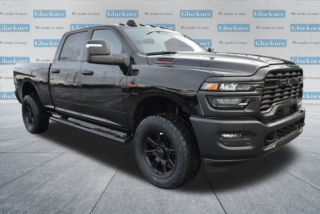 Glockner Chrysler Dodge Jeep Ram of Ashland is proud to offer this handsome 2025 Ram 2500 in Diamond Black Crystal Pearlcoat. This 2025 Ram 2500 has passed our comprehensive inspection and comes with the following features; Bed Convenience Group (LED Bed Lighting and MOPAR Spray In Bedliner), Cold Weather Group (Engine Block Heater and MOPAR Winter Front Grille Cover), Quick Order Package 24A Tradesman, Tradesman Level 1 Equipment Group (115V Auxiliary Front Power Outlet, 12" Touchscreen Display, 2 Way Rear Headrest Seat, 4 Way Front Headrests, 40/20/40 Split Bench Seat, 400W Inverter, 4G LTE Wi-Fi Hot Spot, Air Conditioning ATC w/Dual Zone Control, Alexa Built-In, Anti-Spin Differential Rear Axle, Apple CarPlay, Auto-Dimming Rear-View Mirror, Black Exterior Mirrors, Carpet Floor Covering, Cloth 40/20/40 Bench Seat, Connected Travel & Traffic Services, Connectivity - US/Canada, Disassociated Touchscreen Display, Emergency Vehicle Alert System (EVAS), Exterior 115V AC Outlet, Exterior Mirrors Courtesy Lamps, Exterior Mirrors w/Heating Element, Exterior Mirrors w/Supplemental Signals, Front & Rear Floor Mats, Front Armrest w/Cupholders, Global Telematics Box Module (TBM), Google Android Auto, GPS Antenna Input, GPS Navigation, HD Radio, Integrated Voice Command w/Bluetooth, Manual Adjust 4-Way Driver Seat, Manual Adjust 4-Way Front Passenger Seat, Manual Folding Exterior Mirrors, Manual Telescoping Mirrors, Mirror Running Lights, Mopar Black Tubular Side Steps, Off-Road Info Pages, ParkSense Front/Rear Park Assist System, Power Adjust Mirrors, Power Adjustable Convex Aux Mirrors, Power Heated Folding Telescope Mirrors, Radio: Uconnect 5 Nav w/12.0" Display, Rear Folding Seat, Rear Power Sliding Window, Remote USB Port - Charge Only, Selectable Tire Fill Alert, SiriusXM Radio Service, SiriusXM w/360L, Storage Tray, Tinted Acoustic Windshield Glass, and Trailer Tow Pages), 4-Wheel Disc Brakes, 5th Wheel/Gooseneck Towing Prep Group, 6 Speakers, ABS brakes, Air Conditioning, AM/FM radio: SiriusXM, Apple CarPlay/Android Auto, Black Wheel Center Hub, Brake assist, Clearance Lamps, Compass, Delay-off headlights, Driver door bin, Dual front impact airbags, Dual front side impact airbags, Electronic Stability Control, Front anti-roll bar, Front Center Armrest w/Storage, Front fog lights, Front License Plate Bracket, Front reading lights, Fully automatic headlights, Heavy Duty Vinyl 40/20/40 Split Bench Seat, Illuminated entry, Low tire pressure warning, Manufacturer's Statement of Origin, Occupant sensing airbag, Outside temperature display, Overhead airbag, Overhead console, Panic alarm, ParkView Rear Back-Up Camera, Passenger door bin, Passenger vanity mirror, Power steering, Power windows, Radio data system, Radio: Uconnect 5 w/8.4" Display, Rear anti-roll bar, Rear step bumper, Rear window defroster, Remote keyless entry, Speed control, Tachometer, Tilt steering wheel, Traction control, Variably intermittent wipers, Voltmeter, Wheels: 17" x 7.5" Black Steel Styled, and Wheels: 18" x 8.0" Black Painted Steel.