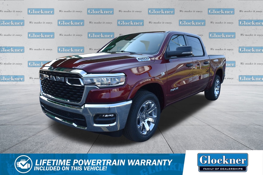 Glockner Chrysler Dodge Jeep Ram of Ashland is proud to offer this handsome 2026 Ram 1500 in Delmonico Red Pearlcoat. This 2026 Ram 1500 has passed our comprehensive inspection and comes with the following features; Big Horn Level 2 Equipment Group (115V Auxiliary Power Outlet, 115V Auxiliary Rear Power Outlet, 12" Touchscreen Display, 2nd Row In Floor Storage Bins, 3 Rear Seat Head Restraints, 4 Way Front Headrests, 400W Inverter, 4G LTE Wi-Fi Hot Spot, 9 Amplified Speakers w/Subwoofer, Air Conditioning ATC w/Dual Zone Control, Apple CarPlay, Auto Power-Folding Mirrors, Auto-Dimming Exterior Driver Mirror, Auto-Dimming Rear-View Mirror, Black Exterior Mirrors, Black Premium Power Mirrors, Body Color Fender Flares, Bucket Seats, Center Console Parts Module, Cluster 7.0" TFT Color Display, Configurable Drive Mode, Connected Travel & Traffic Services, Connectivity - US/Canada, Convex Wide-Angle Exterior Mirror Insert, Deluxe Cloth Bucket Seats, Disassociated Touchscreen Display, Exterior Mirrors Courtesy Lamps, Exterior Mirrors w/Heating Element, Exterior Mirrors w/Supplemental Signals, Front Seat Back Map Pockets, Full Length Floor Console, Global Telematics Box Module (TBM), Glove Box Lamp, Google Android Auto, GPS Antenna Input, GPS Navigation, HD Radio, Heated Front Seats, Heated Steering Wheel, Integrated Center Stack Radio, Integrated Voice Command w/Bluetooth, Leather Wrapped Steering Wheel, LED Dome Lamp w/On/Off Switch, LED Footwell Lighting, Manual Adjust 4-Way Front Passenger Seat, Media Hub w/2 Charge Only USBs, Overhead LED Lamps, Power 2-Way Driver Lumbar Adjust, Power Adjust 8-Way Driver Seat, Power Adjustable Pedals, Premium Overhead Console, Radio: Uconnect 5 Nav w/12.0" Display, Rear 60/40 Folding Seat, Rear Center Armrest, Rear Power Sliding Window, Rear Window Defroster, Remote Tailgate Release, Secondary Active Grille Shutters, Security Alarm, SiriusXM Radio Service, SiriusXM w/360L, Steering Wheel Mounted Audio Controls, Sun Visors w/Illuminated Vanity Mirrors, Universal Garage Door Opener, USB Host Flip, Wheels: 20" x 9" Aluminum Chrome Clad (WRK), and Wireless Charging Pad), Quick Order Package 27Z Big Horn, 33 Gallon Fuel Tank, 4-Wheel Disc Brakes, 48V Belt Starter Generator, 6 Speakers, ABS brakes, Air Conditioning, Alloy wheels, AM/FM radio, Apple CarPlay/Android Auto, Auto High-beam Headlights, Brake assist, Bumpers: chrome, Cloth Bucket Seats, Compass, Delay-off headlights, Driver door bin, Dual front impact airbags, Dual front side impact airbags, Electronic Stability Control, Front anti-roll bar, Front Bucket Seats, Front Center Armrest w/Storage, Front fog lights, Front reading lights, Front wheel independent suspension, Fully automatic headlights, Heated door mirrors, Illuminated entry, Low tire pressure warning, Manual Adjust 4-Way Driver Seat, Manual Folding Exterior Mirrors, Manufacturer's Statement of Origin, MOPAR Front & Rear Rubber Floor Mats, MyFlexCare Service Plan, Occupant sensing airbag, Outside temperature display, Overhead airbag, Overhead console, Panic alarm, ParkView Rear Back-Up Camera, Passenger door bin, Passenger vanity mirror, Power door mirrors, Power steering, Power windows, Radio data system, Radio: Uconnect 5 W w/8.4" Display, RAM Grille Badge - Chrome, Rear anti-roll bar, Rear step bumper, Remote keyless entry, Speed control, Supplier Part Tracking (J-1), Tachometer, Telescoping steering wheel, Tilt steering wheel, Traction control, Trailer Brake Control, Trip computer, Variably intermittent wipers, Voltmeter, Wheels: 18" x 8" Cast-Aluminum Painted, and Wheels: 20" x 9" Aluminum Chrome Clad.