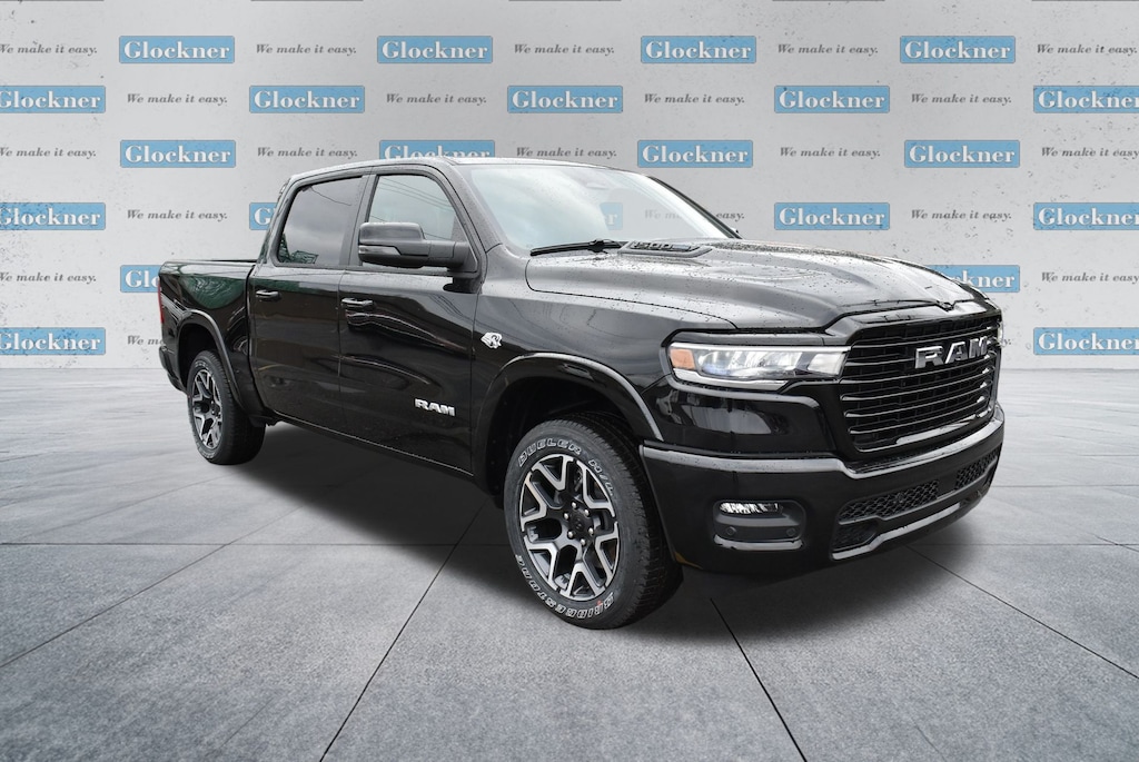 Glockner Chrysler Dodge Jeep Ram of Ashland is proud to offer this handsome 2026 Ram 1500 in Diamond Black Crystal Pearlcoat. This 2026 Ram 1500 has passed our comprehensive inspection and comes with the following features; Laramie Level 1 Equipment Group (Rain Sensitive Windshield Wipers and Remote Tailgate Release), Quick Order Package 27H Laramie, Sport Appearance Package (Accent Color Premium Power Mirrors, Auto Power-Folding Mirrors, Auto-Dimming Exterior Driver Mirror, Black Interior Accents, Black Painted Exterior Mirrors Caps, Body Color Front Bumper, Body Color Rear Bumper with Step Pads, Bridgestone Brand Tires, Convex Wide-Angle Exterior Mirror Insert, Exterior Mirrors Courtesy Lamps, Exterior Mirrors with Heating Element, Exterior Mirrors with Memory, Exterior Mirrors with Supplemental Signals, Grille Surround 3 Body Color Tex 2 Black, RAM Grille Badge - Chrome, and Sport Performance Hood), 10 Speakers, 4-Wheel Disc Brakes, 4G LTE Wi-Fi Hot Spot, ABS brakes, Active Noise Control System, Air Conditioning, Alloy wheels, AM/FM radio: SiriusXM with 360L, Apple CarPlay/Android Auto, Audio memory, Auto High-beam Headlights, Auto-dimming door mirrors, Auto-dimming Rear-View mirror, Automatic temperature control, Brake assist, Bumpers: chrome, Chrome Exterior Mirrors, Compass, Connected Travel and Traffic Services, Connectivity - US/Canada, Delay-off headlights, Driver door bin, Driver vanity mirror, Dual front impact airbags, Dual front side impact airbags, Electronic Stability Control, Front anti-roll bar, Front Bucket Seats, Front Center Armrest w/Storage, Front dual zone A/C, Front fog lights, Front reading lights, Front wheel independent suspension, Fully automatic headlights, Garage door transmitter, GPS Navigation, Heated door mirrors, Heated front seats, Heated rear seats, Heated steering wheel, Illuminated entry, Integrated Center Stack Radio, Integrated Voice Command with Bluetooth, Leather steering wheel, Leather Trimmed Bucket Seats, Low tire pressure warning, Manufacturer's Statement of Origin, Memory seat, MOPAR Front and Rear Rubber Floor Mats, MyFlexCare Service Plan, Navigation System, Occupant sensing airbag, Off-Road Information Pages, Outside temperature display, Overhead airbag, Overhead console, Panic alarm, ParkView Rear Back-Up Camera, Passenger door bin, Passenger vanity mirror, Power door mirrors, Power driver seat, Power passenger seat, Power steering, Power windows, Radio data system, Radio: Uconnect 5 Navigation with 12.0" Display, Rear anti-roll bar, Rear reading lights, Rear seat center armrest, Rear step bumper, Remote keyless entry, Security system, SiriusXM Radio Service, SiriusXM with 360L, Speed control, Split folding rear seat, Steering wheel mounted audio controls, Tachometer, Telescoping steering wheel, Tilt steering wheel, Traction control, Trailer Brake Control, Trip computer, Turn signal indicator mirrors, USB Host Flip, Variably intermittent wipers, Ventilated front seats, Voltmeter, and Wheels: 20" x 9" Premium Paint/Polish.