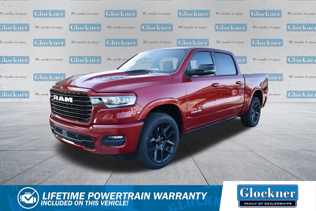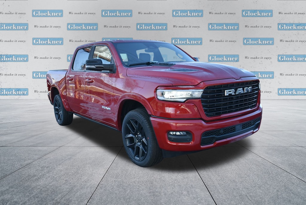 Glockner Chrysler Dodge Jeep Ram of Ashland is proud to offer this wonderful-looking 2026 Ram 1500 in Molten Red Pearlcoat. This 2026 Ram 1500 has passed our comprehensive inspection and comes with the following features; Laramie Level 2 Equipment Group (14.4" Touchscreen Display, 4G LTE Wi-Fi Hot Spot, Cluster 12" TFT Color Display, Connected Travel and Traffic Services, Connectivity - US/Canada, Front Passenger Interactive Display, GPS Navigation, Harman/Kardon 19 Speaker Premium Sound, Integrated Center Stack Radio, Integrated Voice Command with Bluetooth, Power Tailgate, Radio: Uconnect 5 Nav with 14.4" Display, Rain Sensitive Windshield Wipers, SiriusXM Radio Service, SiriusXM with 360L, and USB Host Flip), Quick Order Package 21H Laramie, Sport Appearance Package (Accent Color Premium Power Mirrors, Auto Power-Folding Mirrors, Auto-Dimming Exterior Driver Mirror, Black Interior Accents, Black Painted Exterior Mirrors Caps, Body Color Front Bumper, Body Color Rear Bumper with Step Pads, Bridgestone Brand Tires, Convex Wide-Angle Exterior Mirror Insert, Exterior Mirrors Courtesy Lamps, Exterior Mirrors with Heating Element, Exterior Mirrors with Memory, Exterior Mirrors with Supplemental Signals, Grille Surround 3 Body Color Tex 2 Black, RAM Grille Badge - Chrome, and Sport Performance Hood), 10 Speakers, 3.55 Rear Axle Ratio, 4-Wheel Disc Brakes, ABS brakes, Active Noise Control System, Adjustable pedals, Air Conditioning, Alloy wheels, AM/FM radio: SiriusXM with 360L, Apple CarPlay/Android Auto, Audio memory, Auto High-beam Headlights, Auto-dimming door mirrors, Auto-dimming Rear-View mirror, Automatic temperature control, Brake assist, Bumpers: chrome, Chrome Exterior Mirrors, Compass, Delay-off headlights, Dome Dual LED Reading Lamp, Driver door bin, Driver vanity mirror, Dual front impact airbags, Dual front side impact airbags, Dual-Pane Panoramic Sunroof, Electronic Stability Control, Front anti-roll bar, Front Bucket Seats, Front Center Armrest w/Storage, Front dual zone A/C, Front fog lights, Front License Plate Bracket, Front reading lights, Front wheel independent suspension, Fully automatic headlights, Garage door transmitter, Heated door mirrors, Heated front seats, Heated rear seats, Heated steering wheel, Illuminated entry, Leather steering wheel, Leather Trimmed Bucket Seats, LED Dome/Reading Lamp, Low tire pressure warning, Manufacturer's Statement of Origin, Memory seat, MOPAR Front and Rear Rubber Floor Mats, Navigation System, Occupant sensing airbag, Off-Road Information Pages, Outside temperature display, Overhead airbag, Overhead console, Panic alarm, ParkView Rear Back-Up Camera, Passenger door bin, Passenger vanity mirror, Pedal memory, Pirelli Brand Tires, Power Deployable Running Boards, Power door mirrors, Power driver seat, Power passenger seat, Power steering, Power windows, Radio data system, Radio: Uconnect 5 Navigation with 12.0" Display, Rear anti-roll bar, Rear reading lights, Rear seat center armrest, Rear step bumper, Remote keyless entry, Security system, Speed control, Split folding rear seat, Steering wheel mounted audio controls, Tachometer, Telescoping steering wheel, Tilt steering wheel, Traction control, Trip computer, Turn signal indicator mirrors, Variably intermittent wipers, Ventilated front seats, Voltmeter, Wheels: 20" x 9" Premium Paint/Polish, and Wheels: 22" x 9" Forged Aluminum.