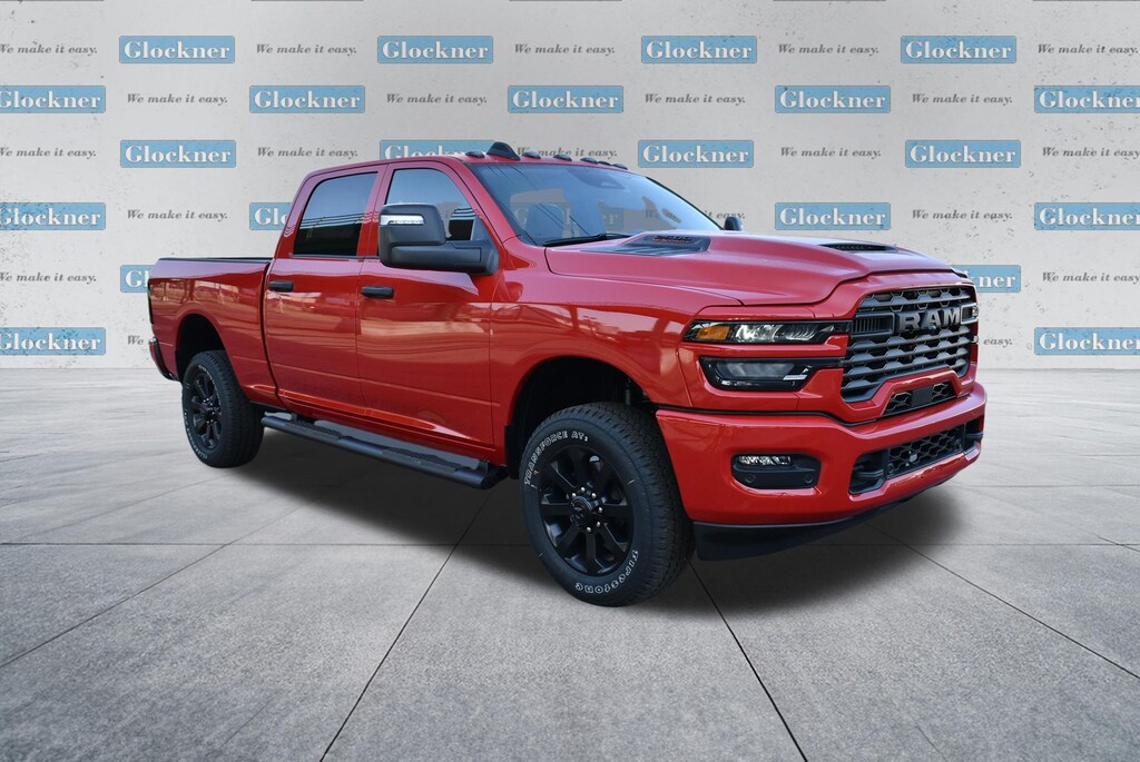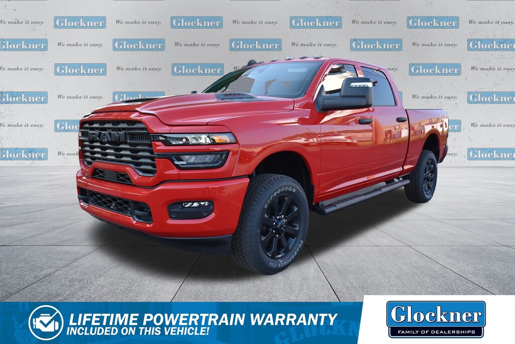 Glockner Chrysler Dodge Jeep Ram of Ashland is proud to offer this beautiful 2026 Ram 2500 in Flame Red Clearcoat. This 2026 Ram 2500 has passed our comprehensive inspection and comes with the following features; Bed Convenience Group (LED Bed Lighting and MOPAR Spray in Bedliner), Quick Order Package 2UC Black Express (2 Way Rear Headrest Seat, 4 Way Front Headrests, 40/20/40 Split Bench Seat, Auto Power-Folding Mirrors, Black Exterior Mirrors, Black Wheel Center Hub, Body Color Grille-Surround, Carpet Floor Covering, Cloth 40/20/40 Bench Seat, Exterior Mirrors Courtesy Lamps, Exterior Mirrors with Heating Element, Exterior Mirrors with Supplemental Signals, Forward and Reverse Utility Lights, Front and Rear Floor Mats, Front Armrest with Cupholders, Manual Adjust 4-Way Driver Seat, Manual Adjust 4-Way Front Passenger Seat, Mirror Running Lights, Mopar Black Tubular Side Steps, Painted Front Bumper, Painted Rear Bumper, ParkSense Front/Rear Park Assist System, Power Adjust Mirrors, Power Heated Folding Telescopic Mirrors, Power Telescoping Mirrors, Power-Adjustable Convex Aux Mirrors, Rear Folding Seat, Remote USB Port - Charge Only, Sport Performance Hood, Storage Tray, and Wheels: 20" x 8.0" Black Painted Aluminum), Tradesman Level 1 Equipment Group (115-Volt Auxiliary Front Power Outlet, 12" Touchscreen Display, 400W Inverter, 4G LTE Wi-Fi Hot Spot, Air Conditioning ATC with Dual Zone Control, Alexa Built-in, Apple CarPlay, Auto-Dimming Rear-View Mirror, Connected Travel and Traffic Services, Connectivity - US/Canada, Disassociated Touchscreen Display, Emergency Vehicle Alert System (EVAS), Exterior 115V AC Outlet, For Details, Visit DriveUconnect.com, For More Info, Call 800-643-2112, Global Telematics Box Module, Google Android Auto, GPS Antenna Input, GPS Navigation, HD Radio, Integrated Voice Command with Bluetooth, Off-Road Info Pages, Radio: Uconnect 5 Navigation with 12.0" Display, Rear Power Sliding Window, Selectable Tire Fill Alert, SiriusXM Radio Service, SiriusXM with 360L, Tinted Acoustic Windshield Glass, and Trailer Tow Pages), 3.73 Axle Ratio, 4-Wheel Disc Brakes, 6 Speakers, ABS brakes, Air Conditioning, AM/FM radio: SiriusXM, Anti-Spin Differential Rear Axle, Apple CarPlay/Android Auto, Brake assist, Clearance Lamps, Compass, Delay-off headlights, Driver door bin, Dual front impact airbags, Dual front side impact airbags, Electronic Stability Control, Front anti-roll bar, Front Center Armrest w/Storage, Front fog lights, Front reading lights, Fully automatic headlights, Illuminated entry, Low tire pressure warning, Manual Folding Exterior Mirrors, Manual Telescoping Mirrors, MyFlexCare Service Plan, Occupant sensing airbag, Outside temperature display, Overhead airbag, Overhead console, Panic alarm, ParkView Rear Back-Up Camera, Passenger door bin, Passenger vanity mirror, Power steering, Power windows, Radio data system, Radio: Uconnect 5 with 8.4" Display, Rear anti-roll bar, Rear step bumper, Rear Wheelhouse Liners, Rear window defroster, Remote keyless entry, Speed control, Tachometer, Tilt steering wheel, Traction control, Variably intermittent wipers, Voltmeter, and Wheels: 17" x 7.5" Black Steel StyleD.