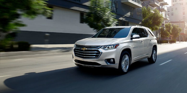 The larger Chevrolet Traverse offers three rows of comfort and passenger space designed to serve big families or big workloads. This sleek and slim front keeps a stylish look for such a workhorse, a design that carries through to the taillights in the rear. The roomy interior also offers lots of tech, with a central touchscreen in newer models that serve as the infotainment hub. Driver-assist features like forward collision and lane departure warnings are standard, and there are some available options to upgrade tech features.