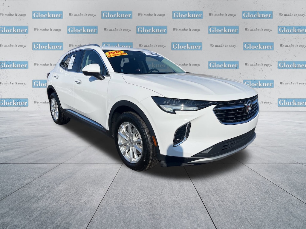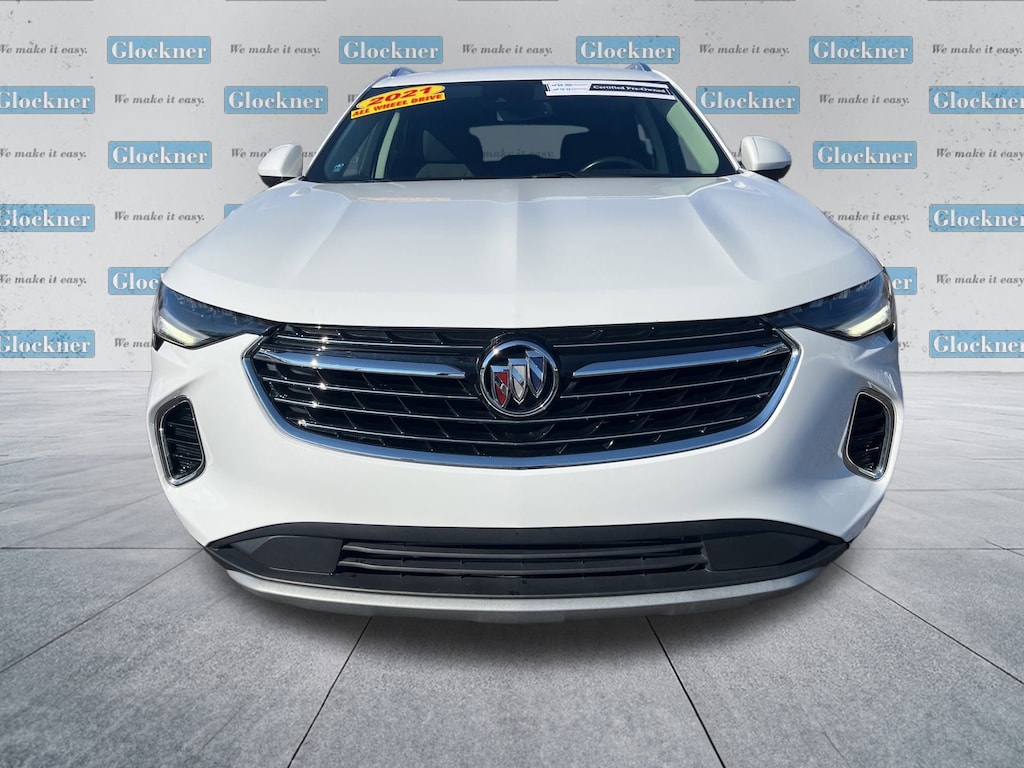 Glockner Chevrolet is proud to offer this superb 2021 Buick Envision in Summit White. This 2021 Buick Envision has passed our comprehensive inspection and comes with the following features; Comfort & Convenience Package (7-Speaker Audio System Feature w/Amplifier, Air Ionizer, Air Quality Indicator Sensor, Automatic Air Circulation/Air Quality Sensor, Dual-Zone ACC Air Conditioning, Hands Free Power Programmable Liftgate, Heated Driver & Front Passenger Seats, Heated Steering Wheel, Radio: Buick Infotainment System AM/FM Stereo, Remote Vehicle Starter System, SiriusXM Radio, USB Charging-Only Ports, USB Ports, and Wireless Apple CarPlay/Wireless Android Auto), Preferred Equipment Group 1SC, Envision Preferred, Glockner Certified Certified, 4D Sport Utility, 2.0L Turbocharged, AWD, Summit White, 3.47 Final Drive Axle Ratio, 4-Wheel Disc Brakes, 6 Speakers, 6-Speaker Audio System Feature, 8-Way Power Driver Seat Adjuster, ABS brakes, Air Conditioning, Alloy wheels, AM/FM radio: SiriusXM, Apple CarPlay/Android Auto, Auto High-beam Headlights, Auto-dimming door mirrors, Auto-dimming Rear-View mirror, Brake assist, Bumpers: body-color, Cloth w/Leatherette Seat Trim, Compass, Delay-off headlights, Driver 4-Way Power Lumbar Seat Adjuster, Driver door bin, Driver vanity mirror, Dual front impact airbags, Dual front side impact airbags, Electronic Stability Control, Emergency communication system: OnStar and Buick connected services capable, Four wheel independent suspension, Front anti-roll bar, Front Bucket Seats, Front Center Armrest, Front Passenger 6-Way Manual Seat Adjuster, Front reading lights, Fully automatic headlights, Heated door mirrors, Illuminated entry, Knee airbag, Leather Shift Knob, Low tire pressure warning, Occupant sensing airbag, Outside temperature display, Overhead airbag, Overhead console, Panic alarm, Passenger door bin, Passenger vanity mirror, Power door mirrors, Power driver seat, Power steering, Power windows, Radio data system, Radio: 8 Diagonal Buick Infotainment System, Rear anti-roll bar, Rear reading lights, Rear seat center armrest, Rear window defroster, Rear window wiper, Remote keyless entry, Roof rack: rails only, Security system, Speed control, Speed-sensing steering, Split folding rear seat, Spoiler, Steering wheel mounted audio controls, Tachometer, Telescoping steering wheel, Tilt steering wheel, Traction control, Trip computer, Variably intermittent wipers, and Wheels: 18 Aluminum w/Bright Silver Finish.Clean Auto Check/No Accidents Reported, One Owner, Bluetooth / Hands-Free Calling, Rear View Back Up Camera, Local Trade, Apple CarPlay/Android Auto, Envision Preferred, 4D Sport Utility, 2.0L Turbocharged, AWD, Summit White, 7-Speaker Audio System Feature w/Amplifier, Air Ionizer, Air Quality Indicator Sensor, Automatic Air Circulation/Air Quality Sensor, Comfort & Convenience Package, Dual-Zone ACC Air Conditioning, Hands Free Power Programmable Liftgate, Heated Driver & Front Passenger Seats, Heated Steering Wheel, Preferred Equipment Group 1SC, Radio: Buick Infotainment System AM/FM Stereo, Remote Vehicle Starter System, SiriusXM Radio, USB Charging-Only Ports, USB Ports, Wireless Apple CarPlay/Wireless Android Auto.Certified.Certification Program Details: Type your description here22/29 City/Highway MPG