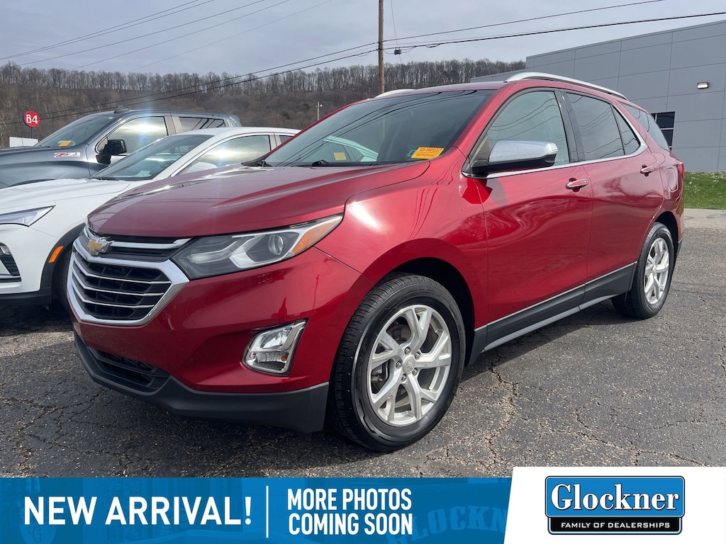 Glockner Chevrolet is proud to offer this handsome 2019 Chevrolet Equinox in Cajun Red Tintcoat. This 2019 Chevrolet Equinox has passed our comprehensive inspection and comes with the following features; Floor Liner Package (LPO) (All-Weather Floor Liners (LPO) and Integrated Cargo Liner (LPO)), Preferred Equipment Group 1LZ, Equinox Premier, 4D Sport Utility, AWD, Jet Black Leather, 18 Aluminum Wheels, 2 Rear USB Charging-Only Ports, 2 USB Data Ports, 2 USB Data Ports w/SD Card Reader, 2-Way Power Driver Lumbar Control Seat Adjuster, 3.87 Final Drive Axle Ratio, 4-Wheel Disc Brakes, 6 Speaker Audio System Feature, 6 Speakers, 8-Way Power Driver Seat Adjuster, ABS brakes, Air Conditioning, Alloy wheels, AM/FM radio: SiriusXM, Apple CarPlay/Android Auto, Auto-dimming door mirrors, Auto-dimming Rear-View mirror, Automatic temperature control, Bluetooth® For Phone, Brake assist, Bumpers: body-color, Compass, Custom Molded Rear Splash Guards (LPO), Delay-off headlights, Driver door bin, Driver vanity mirror, Dual front impact airbags, Dual front side impact airbags, Electronic Stability Control, Emergency communication system: OnStar and Chevrolet connected services capable, Four wheel independent suspension, Front anti-roll bar, Front Bucket Seats, Front Center Armrest, Front dual zone A/C, Front fog lights, Front reading lights, Fully automatic headlights, Garage door transmitter, Heated door mirrors, Heated Driver & Front Passenger Seats, Heated front seats, Illuminated entry, Leather Shift Knob, Low tire pressure warning, Memory seat, Occupant sensing airbag, Outside temperature display, Overhead airbag, Overhead console, Panic alarm, Passenger door bin, Passenger vanity mirror, Perforated Leather-Appointed Seat Trim, Power door mirrors, Power driver seat, Power Liftgate, Power steering, Power windows, Premium audio system: Chevrolet MyLink, Radio data system, Radio: Chevrolet Infotainment 3 Plus System, Rear anti-roll bar, Rear reading lights, Rear seat center armrest, Rear window defroster, Rear window wiper, Remote keyless entry, Roof rack: rails only, Security system, SiriusXM Radio, Speed control, Speed-sensing steering, Split folding rear seat, Spoiler, Steering wheel mounted audio controls, Tachometer, Telescoping steering wheel, Tilt steering wheel, Traction control, Trip computer, Turn signal indicator mirrors, and Variably intermittent wipers.
