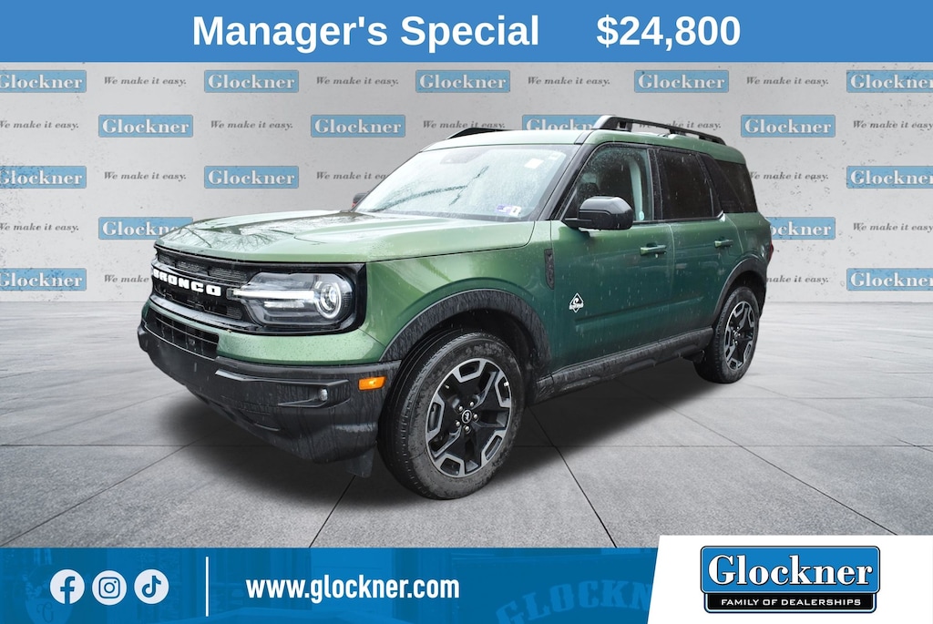 This 2023 Ford Bronco Sport Outer Banks is a true standout in the compact SUV segment. With its striking Green exterior, rugged yet refined styling, and an impressive array of premium features, this Bronco Sport is poised to exceed your expectations.