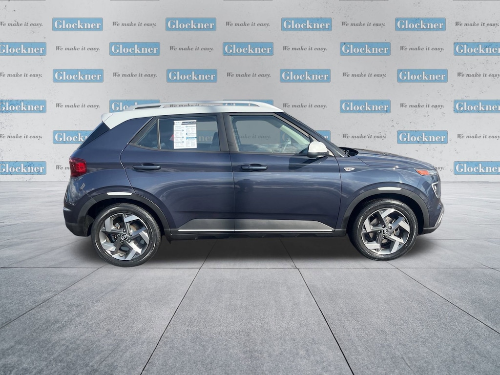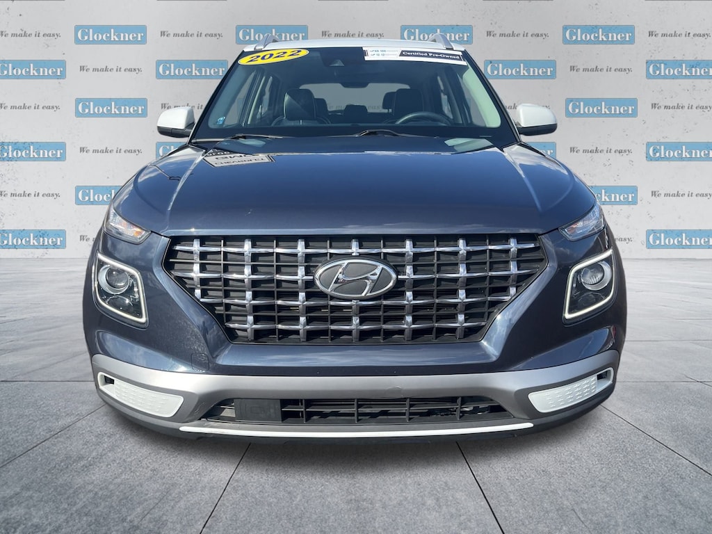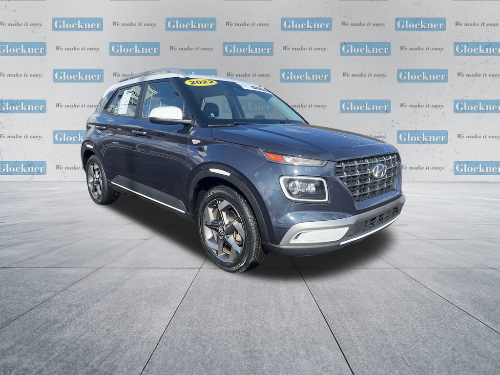 Glockner Chevrolet is proud to offer this good-looking 2022 Hyundai Venue in Denim w/White Roof. This 2022 Hyundai Venue has passed our comprehensive inspection and comes with the following features; Option Group 01, Glockner Certified Certified, Navigation System, 4-Wheel Disc Brakes, 6 Speakers, 6.483 Axle Ratio, 6.5J x 17 Alloy Wheels, ABS brakes, Air Conditioning, Alloy wheels, AM/FM radio: SiriusXM, Apple CarPlay & Android Auto, Auto High-beam Headlights, Automatic temperature control, Brake assist, Bumpers: body-color, Cargo Net, Cargo Tray, Carpeted Floor Mats, Cloth Seat Trim, Delay-off headlights, Driver door bin, Driver vanity mirror, Dual front impact airbags, Dual front side impact airbags, Electronic Stability Control, Emergency communication system, Front anti-roll bar, Front Bucket Seats, Front Center Armrest, Front reading lights, Front wheel independent suspension, Fully automatic headlights, Heated door mirrors, Heated Front Bucket Seats, Heated front seats, Illuminated entry, Leather Shift Knob, Leather steering wheel, Low tire pressure warning, Occupant sensing airbag, Outside temperature display, Overhead airbag, Overhead console, Panic alarm, Passenger door bin, Passenger vanity mirror, Power door mirrors, Power steering, Power windows, Radio: AM/FM/HD/SiriusXM Display Audio, Rear window defroster, Rear window wiper, Remote keyless entry, Roof rack: rails only, Security system, Speed control, Speed-sensing steering, Split folding rear seat, Spoiler, Steering wheel mounted audio controls, Tachometer, Telescoping steering wheel, Tilt steering wheel, Traction control, Trip computer, and Variably intermittent wipers.
