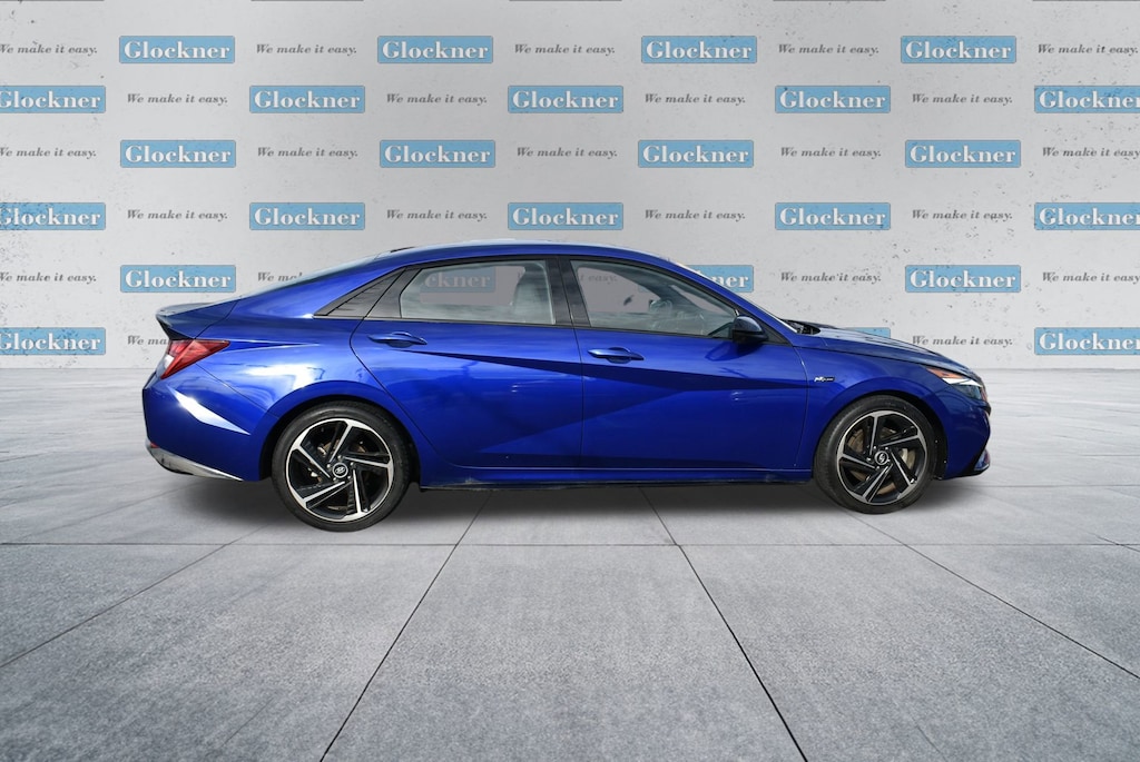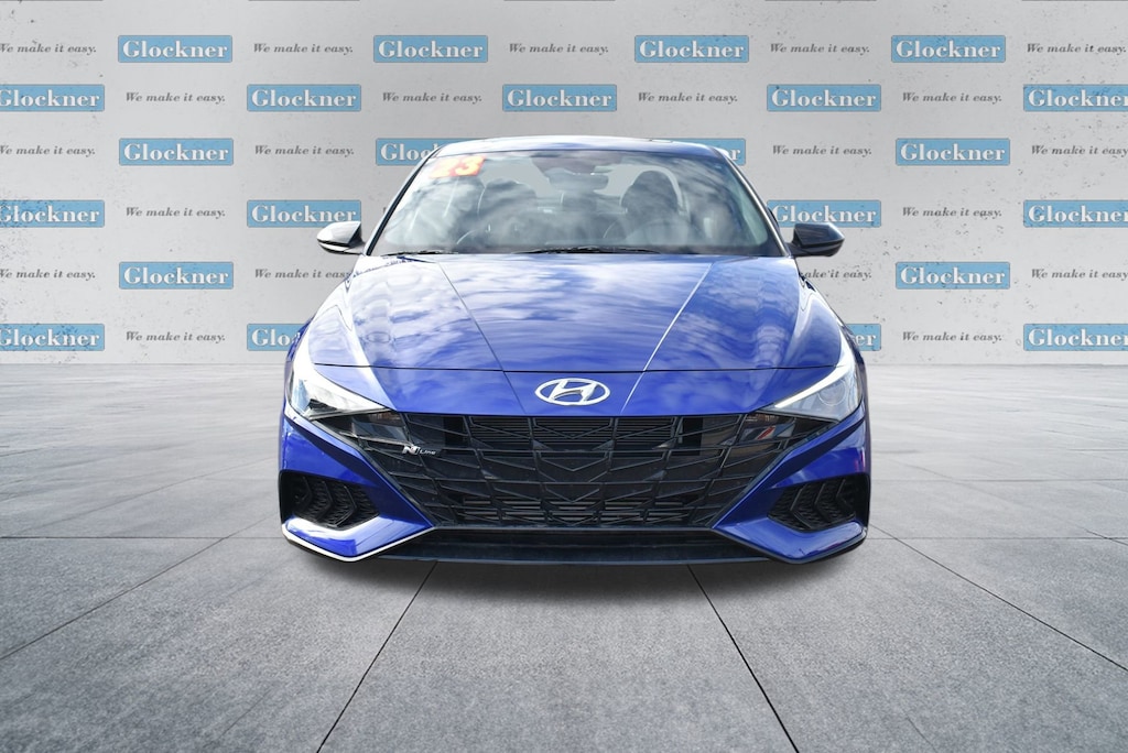 Glockner of Ironton is proud to offer this superb-looking 2023 Hyundai Elantra in Intense Blue. This 2023 Hyundai Elantra has passed our comprehensive inspection and comes with the following features; Option Group 01, 18 x 7.5J Alloy Wheels, 4-Wheel Disc Brakes, 6 Speakers, ABS brakes, Air Conditioning, Alloy wheels, AM/FM radio: SiriusXM, Apple CarPlay & Android Auto, Auto High-beam Headlights, Automatic temperature control, Brake assist, Bumpers: body-color, Cargo Net, Carpeted Floor Mats, Combination Cloth & Leather Seating Surfaces, Delay-off headlights, Driver door bin, Driver vanity mirror, Dual front impact airbags, Dual front side impact airbags, Electronic Stability Control, Emergency communication system: Blue Link Connected Car Service (3-year complimentary subscription), Exterior Parking Camera Rear, First Aid Kit, Four wheel independent suspension, Front anti-roll bar, Front Bucket Seats, Front Center Armrest, Front dual zone A/C, Front reading lights, Fully automatic headlights, Heated door mirrors, Heated front seats, Heated Front Sport Bucket Seats, Illuminated entry, Leather Shift Knob, Leather steering wheel, Low tire pressure warning, Navigation System, Occupant sensing airbag, Outside temperature display, Overhead airbag, Overhead console, Panic alarm, Passenger door bin, Passenger vanity mirror, Power door mirrors, Power driver seat, Power moonroof, Power steering, Power windows, Radio: AM/FM/HD/SiriusXM Display Audio, Rear anti-roll bar, Rear seat center armrest, Rear window defroster, Remote keyless entry, Reversible Cargo Tray, Security system, Speed control, Speed-sensing steering, Split folding rear seat, Spoiler, Sport steering wheel, Steering wheel mounted audio controls, Tachometer, Telescoping steering wheel, Tilt steering wheel, Traction control, Trip computer, and Variably intermittent wipers.28/36 City/Highway MPG