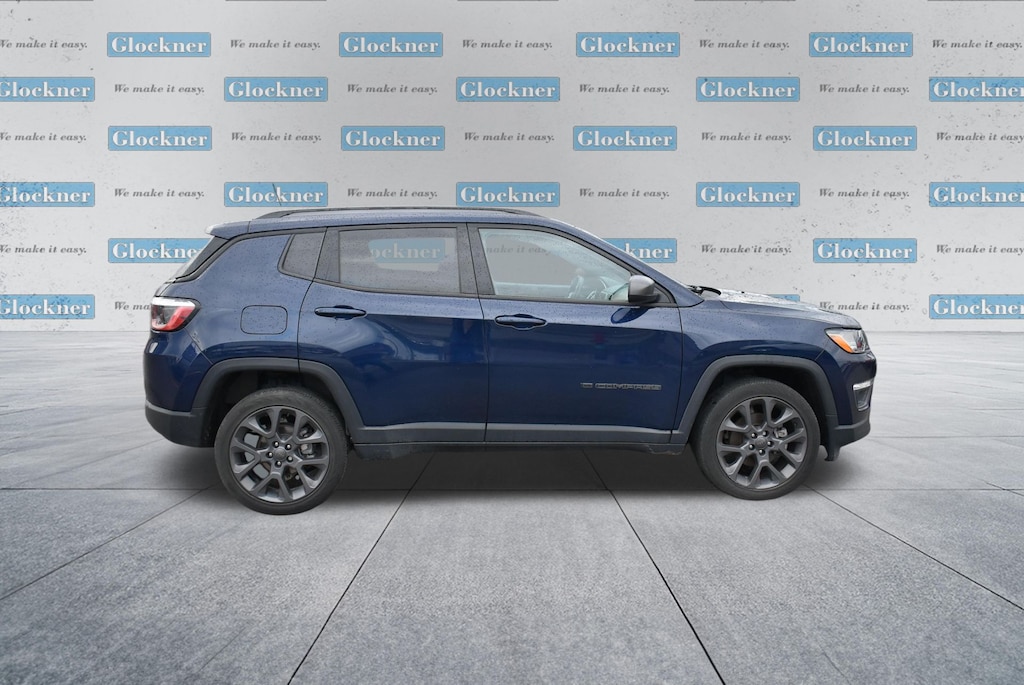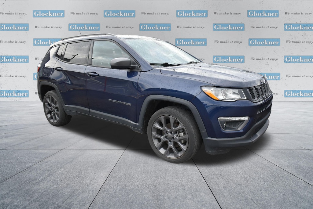 Glockner Chrysler Dodge Jeep Ram of Ashland is proud to offer this terrific 2021 Jeep Compass in Jazz Blue Pearlcoat. This 2021 Jeep Compass has passed our comprehensive inspection and comes with the following features; 80th Anniversary Convenience Group (Heated Front Seats, Heated Steering Wheel, Power Liftgate, Reversible Carpet/Vinyl Cargo Mat, and Windshield Wiper De-Icer), Quick Order Package 2GP (Jeep 80th Anniversary Edition), Glockner Certified Certified, 4WD, 3.73 Axle Ratio, 4-Wheel Disc Brakes, 6 Speakers, 80th Edition Leather Seats, ABS brakes, Air Conditioning, Alloy wheels, AM/FM radio: SiriusXM, Anti-whiplash front head restraints, Apple CarPlay/Android Auto, Auto High-beam Headlights, Auto-dimming Rear-View mirror, Automatic temperature control, Brake assist, Bumpers: body-color, Compass, Delay-off headlights, Driver door bin, Driver vanity mirror, Dual front impact airbags, Dual front side impact airbags, Electronic Stability Control, Emergency communication system: SiriusXM Guardian, Four wheel independent suspension, Front anti-roll bar, Front Bucket Seats, Front Center Armrest w/Storage, Front dual zone A/C, Front fog lights, Front reading lights, Fully automatic headlights, Heated door mirrors, Illuminated entry, Knee airbag, Low tire pressure warning, Navigation System, Occupant sensing airbag, Outside temperature display, Overhead airbag, Overhead console, Panic alarm, ParkView Rear Back-Up Camera, Passenger door bin, Passenger vanity mirror, Power door mirrors, Power driver seat, Power steering, Power windows, Radio: Uconnect 4C Nav w/8.4" Display, Rear anti-roll bar, Rear seat center armrest, Rear window defroster, Rear window wiper, Remote keyless entry, Roof rack: rails only, Speed control, Split folding rear seat, Spoiler, Steering wheel mounted audio controls, Tachometer, Telescoping steering wheel, Tilt steering wheel, Traction control, Trip computer, Variably intermittent wipers, and Wheels: 19" x 7.5" Satin Granite Aluminum.