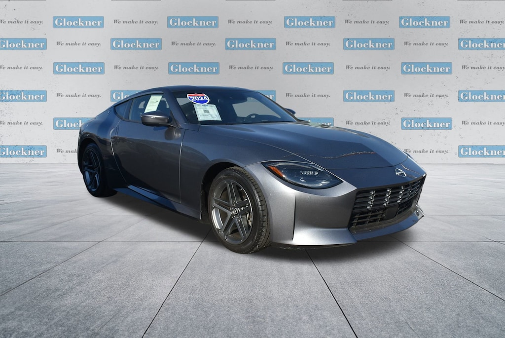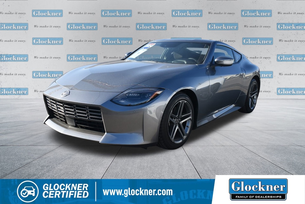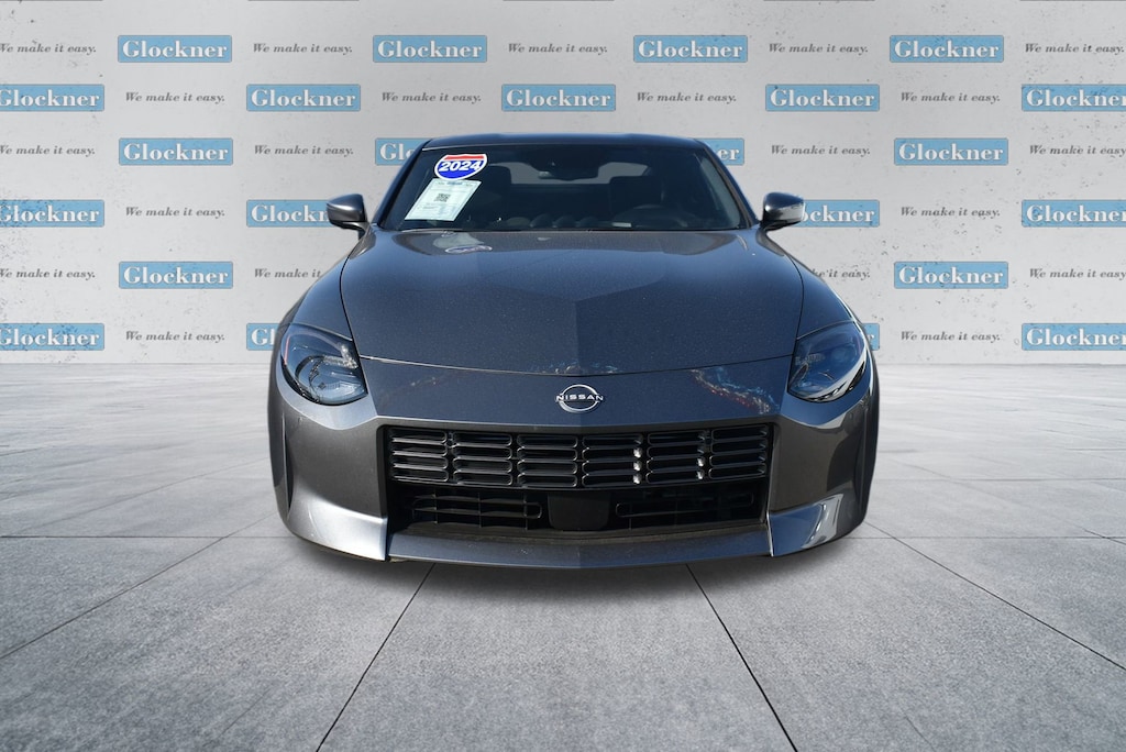 Glockner of Ironton is proud to offer this beautiful 2024 Nissan Z in Gun Metallic. This 2024 Nissan Z has passed our comprehensive inspection and comes with the following features; Floor Mat Package (First Aid Kit), Glockner Certified Certified, 4-Wheel Disc Brakes, 6 Speakers, ABS brakes, Air Conditioning, Alloy wheels, AM/FM radio: SiriusXM, Anti-whiplash front head restraints, Apple CarPlay/Android Auto, Auto High-beam Headlights, Auto-dimming Rear-View mirror, Automatic temperature control, Blind Spot Warning, Brake assist, Bumpers: body-color, Delay-off headlights, Driver door bin, Driver vanity mirror, Dual front impact airbags, Dual front side impact airbags, Electronic Stability Control, Four wheel independent suspension, Front anti-roll bar, Front Bucket Seats, Front Center Armrest, Front reading lights, Fully automatic headlights, Illuminated Kick Plate - Brushed Metallic, Leather Shift Knob, Leather steering wheel, Low tire pressure warning, Occupant sensing airbag, Outside temperature display, Overhead airbag, Panic alarm, Passenger door bin, Passenger vanity mirror, Power door mirrors, Power steering, Power windows, Radio data system, Radio: Nissan Audio w/6 Speakers, Rear anti-roll bar, Rear window defroster, Remote keyless entry, Security system, Speed control, Speed-sensing steering, Steering wheel mounted audio controls, Tachometer, Telescoping steering wheel, Tilt steering wheel, Traction control, Trip computer, Turn signal indicator mirrors, Variably intermittent wipers, Voltmeter, Wheels: 18 x 9 Styled Alloy, and Woven Cloth Seat Trim.