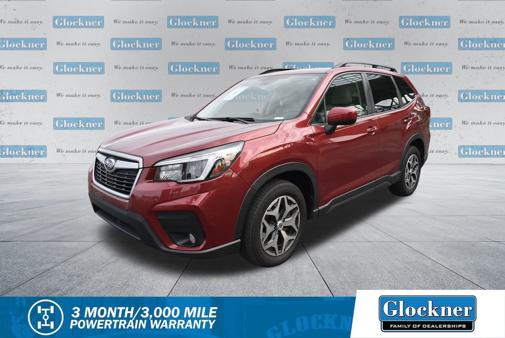 Glockner Chrysler Dodge Jeep Ram of Ashland is proud to offer this charming 2021 Subaru Forester in Crimson Red Pearl. This 2021 Subaru Forester has passed our comprehensive inspection and comes with the following features; 3.70 Axle Ratio, 4-Wheel Disc Brakes, 6 Speakers, ABS brakes, Air Conditioning, Alloy wheels, AM/FM radio: SiriusXM, Auto High-beam Headlights, Automatic temperature control, Brake assist, Bumpers: body-color, CD player, Cloth Upholstery, Driver door bin, Driver vanity mirror, Dual front impact airbags, Dual front side impact airbags, Electronic Stability Control, Emergency communication system: STARLINK Safety and Security (Subscription Required), Exterior Parking Camera Rear, Four wheel independent suspension, Front anti-roll bar, Front Bucket Seats, Front Center Armrest, Front fog lights, Front reading lights, Fully automatic headlights, Heated door mirrors, Heated Front Bucket Seats, Heated front seats, Illuminated entry, Knee airbag, Low tire pressure warning, Occupant sensing airbag, Outside temperature display, Overhead airbag, Overhead console, Panic alarm, Passenger door bin, Passenger vanity mirror, Power door mirrors, Power driver seat, Power moonroof: Panoramic, Power steering, Power windows, Radio data system, Radio: Subaru Starlink 6.5" Multimedia Plus System, Rear anti-roll bar, Rear seat center armrest, Rear window defroster, Rear window wiper, Remote keyless entry, Roof rack: rails only, Security system, Speed control, Speed-sensing steering, Split folding rear seat, Spoiler, STARLINK/Apple CarPlay/Android Auto, Steering wheel mounted audio controls, Tachometer, Telescoping steering wheel, Tilt steering wheel, Traction control, Trip computer, Variably intermittent wipers, and Wheels: 17" x 7.0J Black Machine Finish Alloy.