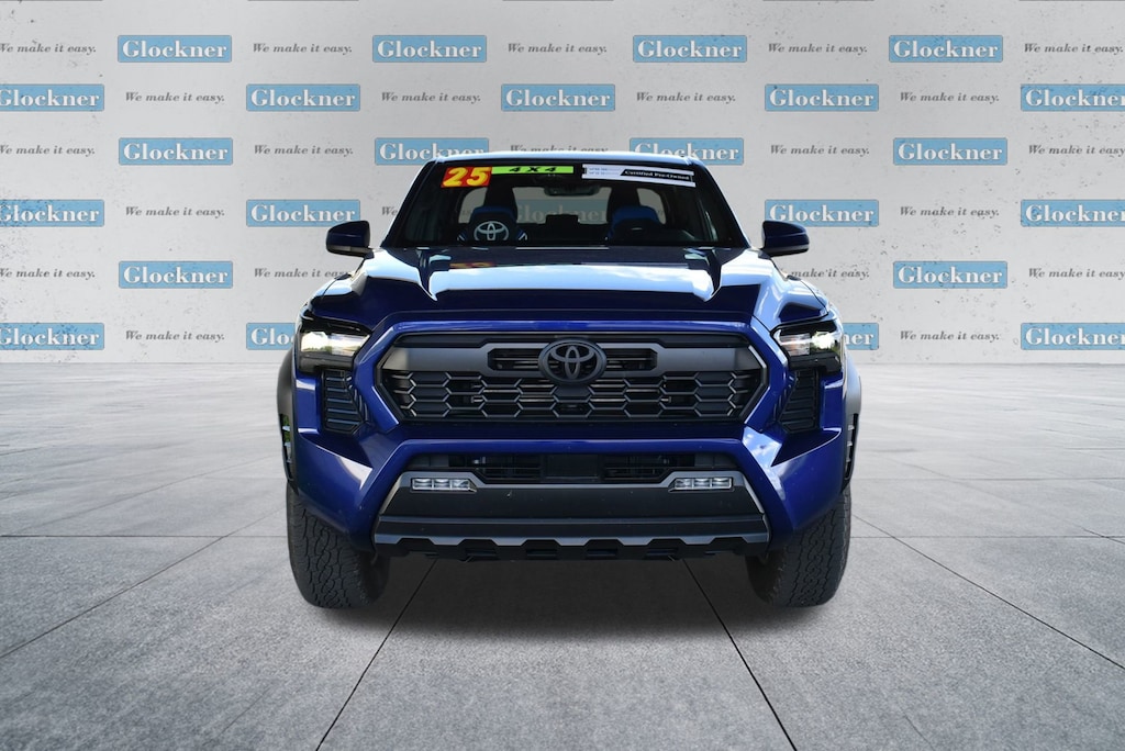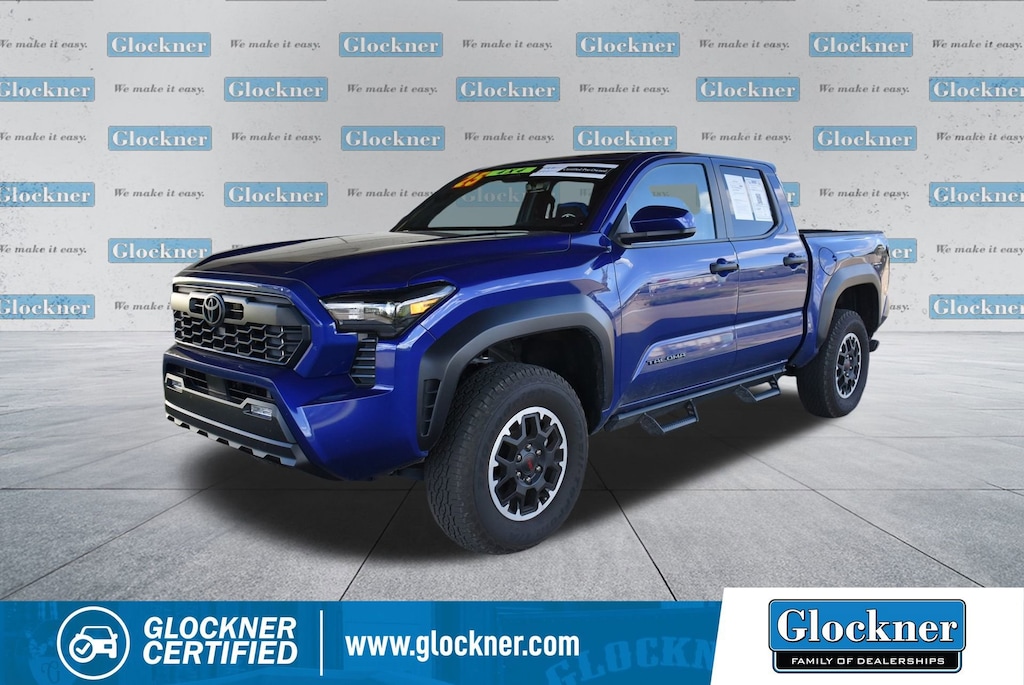 Glockner of Ironton is proud to offer this dependable, reliable 2025 Toyota Tacoma in Blue. This 2025 Toyota Tacoma has passed our comprehensive inspection and comes with the following features; Glockner Certified Certified, 4WD, 3.583 Axle Ratio, 4-Wheel Disc Brakes, 6 Speakers, ABS brakes, Air Conditioning, Alloy wheels, AM/FM radio: SiriusXM, Anti-whiplash front head restraints, Apple CarPlay/Android Auto, Auto High-beam Headlights, Auto-dimming Rear-View mirror, Brake assist, Bumpers: body-color, Driver door bin, Dual front impact airbags, Dual front side impact airbags, Electronic Stability Control, Emergency communication system: Safety Connect (1-year trial), Exterior Parking Camera Rear, Fabric Seat Trim, Four wheel independent suspension, Front anti-roll bar, Front Bucket Seats, Front Center Armrest, Front fog lights, Front reading lights, Fully automatic headlights, Heated door mirrors, Illuminated entry, Knee airbag, Low tire pressure warning, Occupant sensing airbag, Outside temperature display, Overhead airbag, Overhead console, Panic alarm, Passenger door bin, Power door mirrors, Power steering, Power windows, Radio: 8 Toyota Audio Multimedia, Rear step bumper, Rear window defroster, Remote keyless entry, Speed control, Speed-sensing steering, Split folding rear seat, Steering wheel mounted audio controls, Tachometer, Telescoping steering wheel, Tilt steering wheel, Traction control, Trip computer, and Variably intermittent wipers.